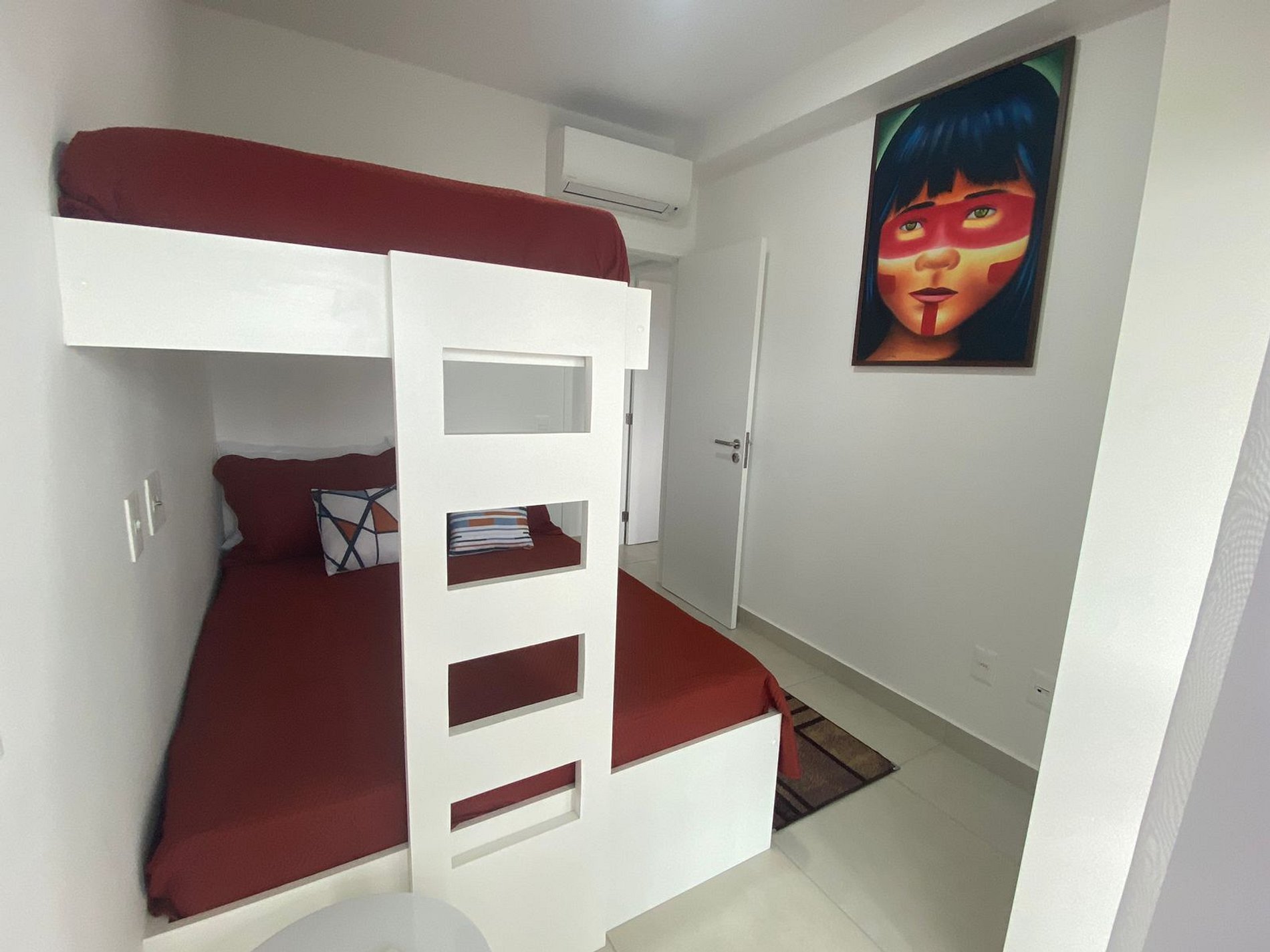 *Diferenciais: Ar condicionado nos quartos e sala, varanda gourmet com churrasqueira e moveis externos, smartTV e wi-fi, piscinas coletivas aquecidas e comuns no condomínio, sauna e brinquedoteca, 2 vagas de garagem, academia; Interfone; Acesso para cadeirantes.