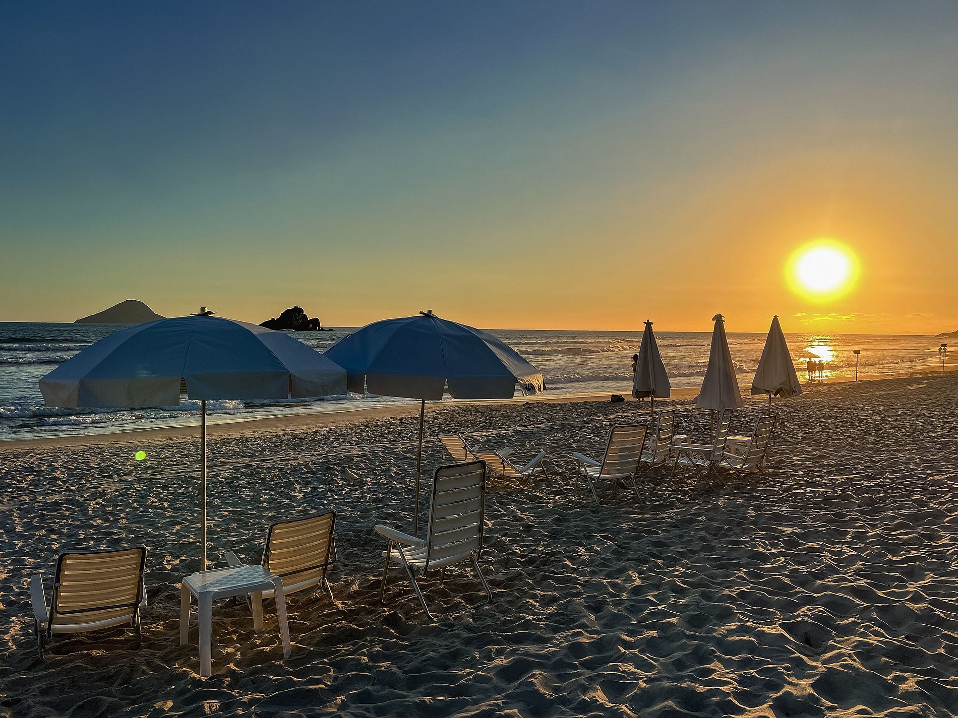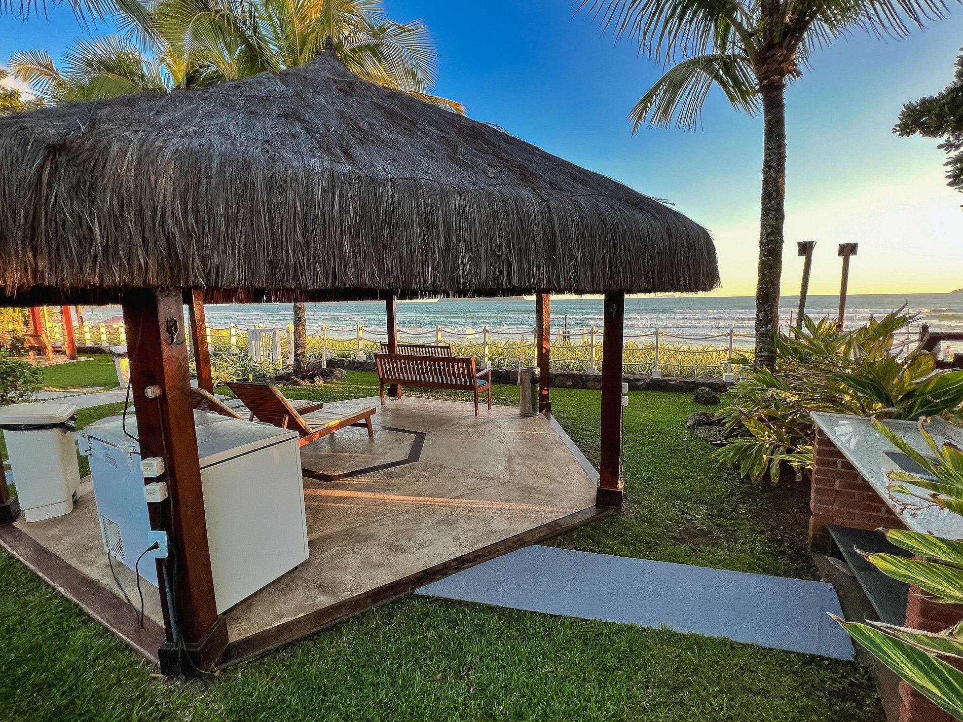 Oferece Área de Lazer privativa na praia; Sauna; Salão de Jogos; Piscina compartilhada no terraço com vista para o mar e serviço de praia com 2 mesas, 4 cadeiras, dois guardas sois.