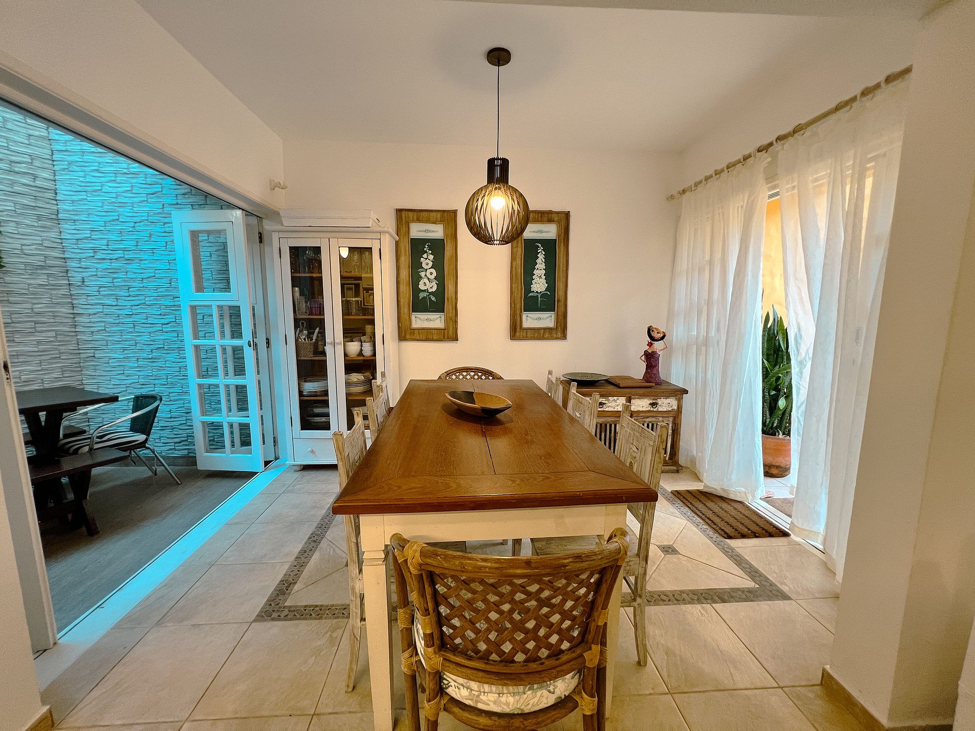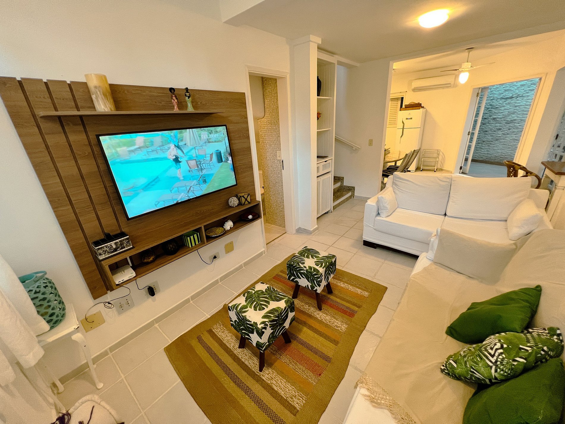 A ACOMODAÇÃO: possui tudo para os hóspedes desfrutarem de uma estadia incrível. - Máximo de 8 pessoas; 4 quartos sendo 2 suítes; Ar condicionado em todos os quartos e sala; 3 banheiros e 1 lavabo; Sala de estar; Sala de jantar; Cozinha; Área de serviço; Garagem para 1 carro; Churrasqueira privativa; O imóvel oferece roupa de cama e banho; COZINHA COMPLETA: Geladeira -freezer-Microondas -Fogão -Forno - Batedeira - Liquidificador - Torradeira - Lancheira -Louça e talheres - Cafeteira elétrica - Garrafa de café - Filtro de água - Cooler -LAZER: WIFI; Smart TV na sala de estar com: TV a cabo; Amazon Prime; Netflix; Globoplay; HBO max e Disney. As demais TVs no andar superior são somente para videogames, DVDs, etc (itens não inclusos). - OUTROS ITENS: Máquina de lavar e secar roupa; varal - Ferro de passar roupa - Papel higiênico; sabonete em barra; esponja de louça; detergente. Adicional: Será disponibilizado 2 bicicletas de adulto em bom estado de conservação para passeios na orla da praia. LIMPEZA -É feita antes do check- in e após o check- out -Limpeza com substância desinfetante -Desinfecção de superfícies tocadas com frequência (como bancadas, interruptores, puxadores e torneiras) e seguindo as normas do combate ao Covid. -Seu PET é bem-vindo - Aceita 1 pet cortesia (mediante consulta prévia). Acima de 1 é cobrada a taxa de R$80 por pet (mediante consulta prévia). -Idade mínima de 25 anos para locatário.