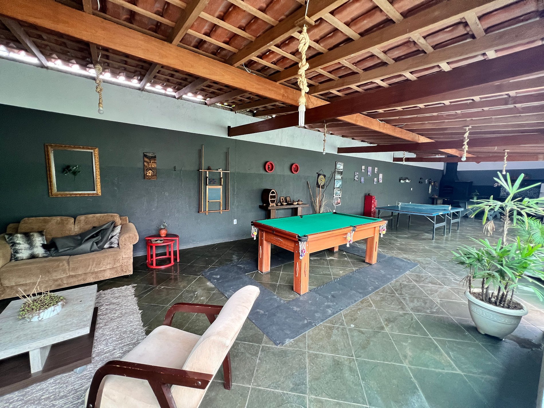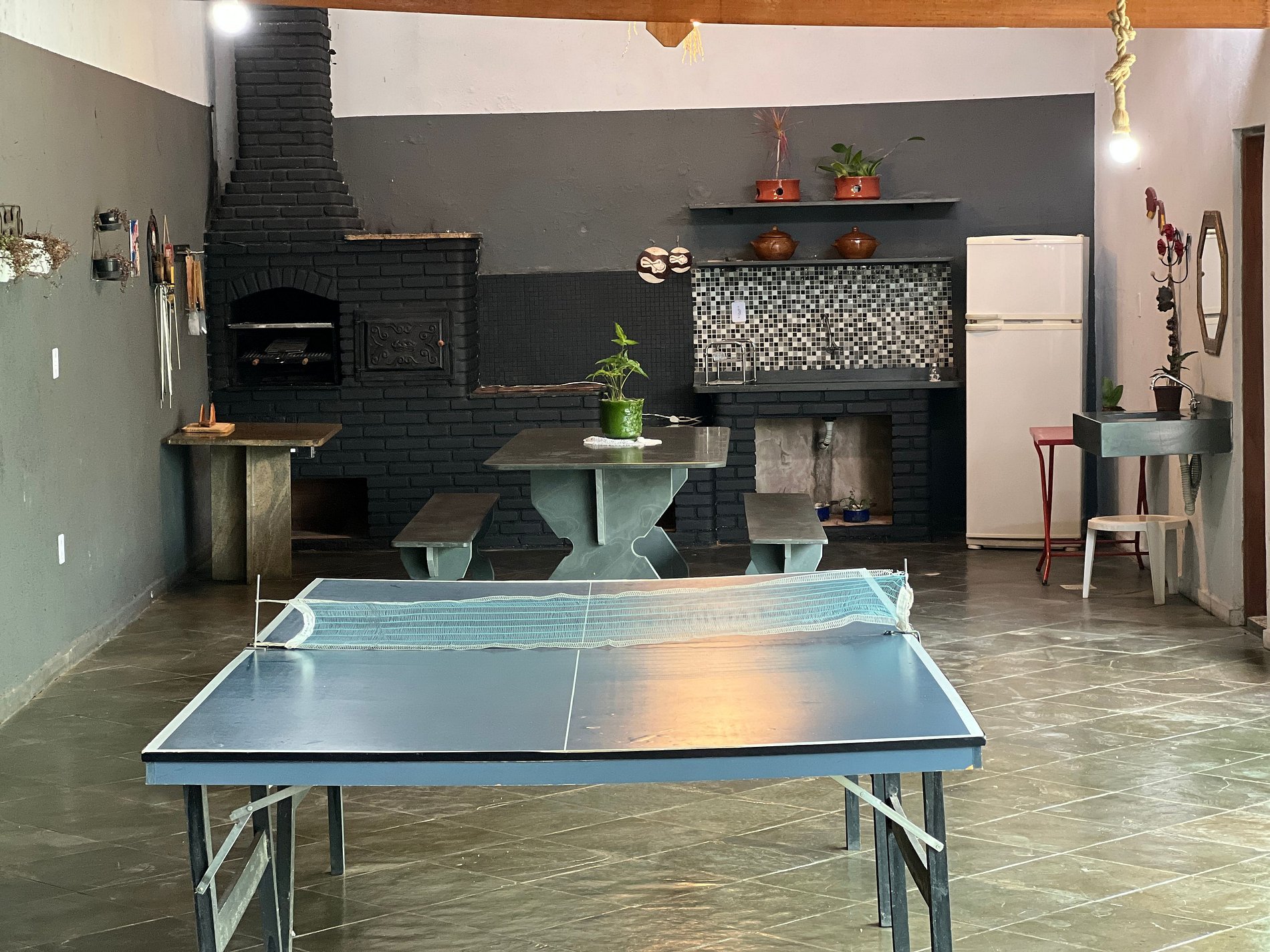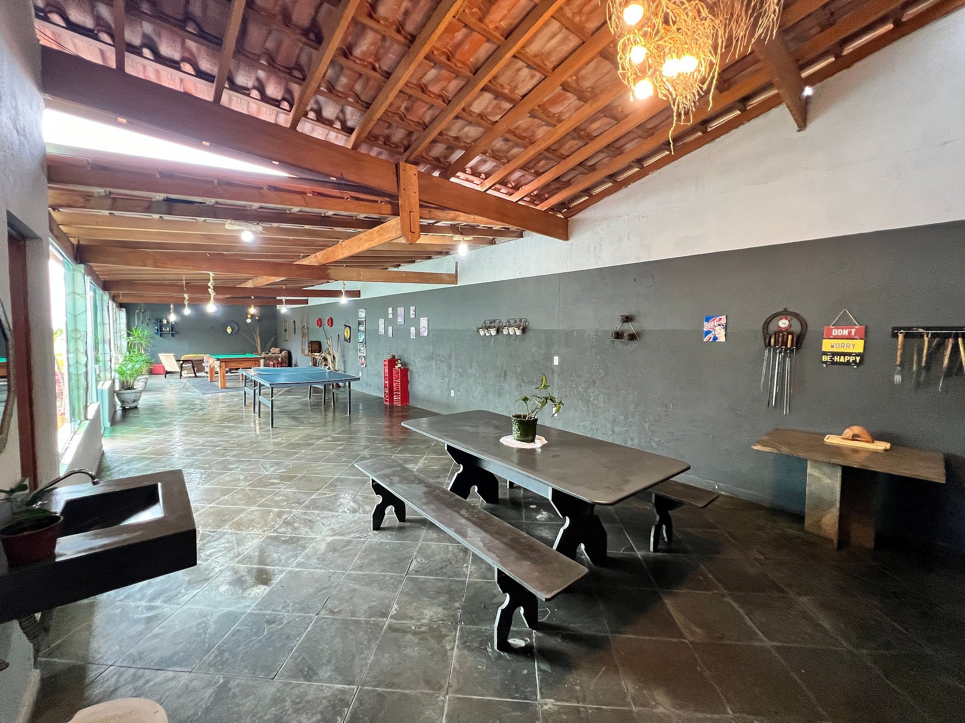 Área de laser com mesa de bilhar, ping pong; local para fogueira; Rede para descanso; campo de futebol; playground; piscina com aquecimento elétrico.