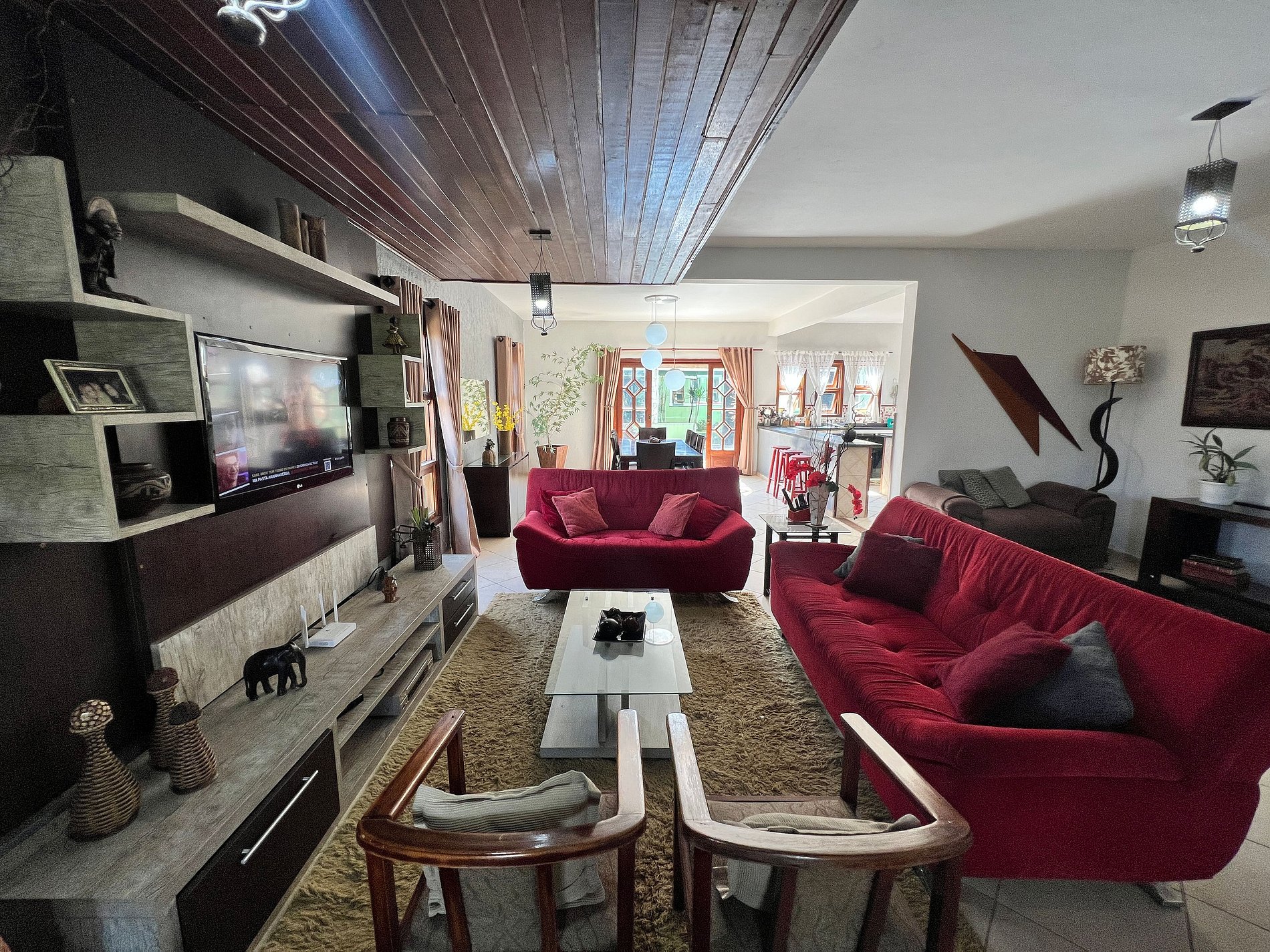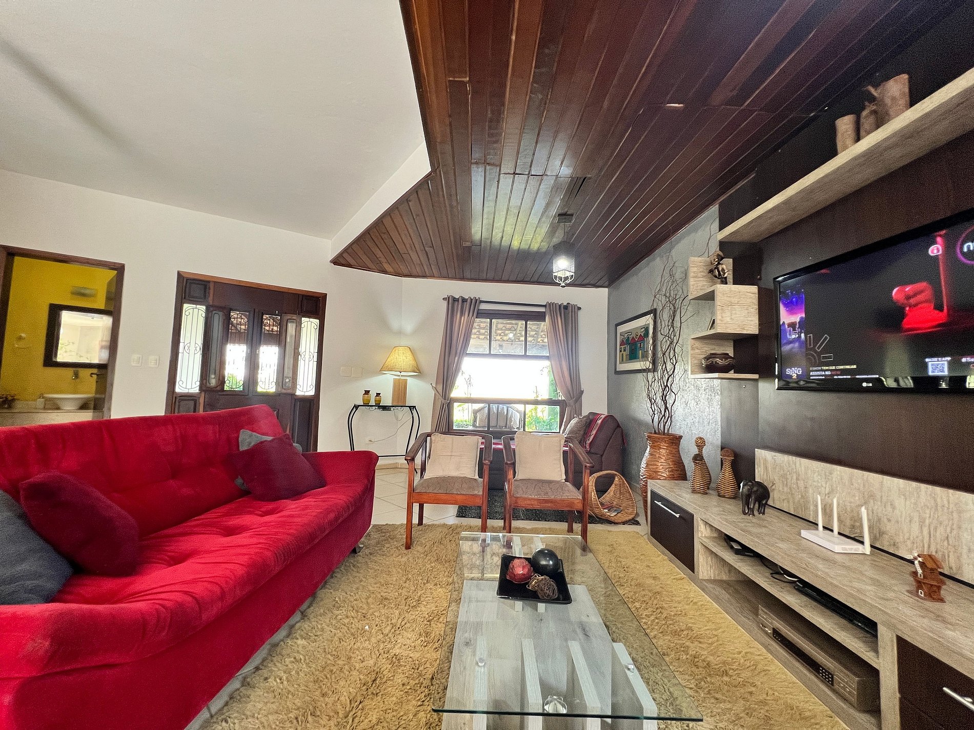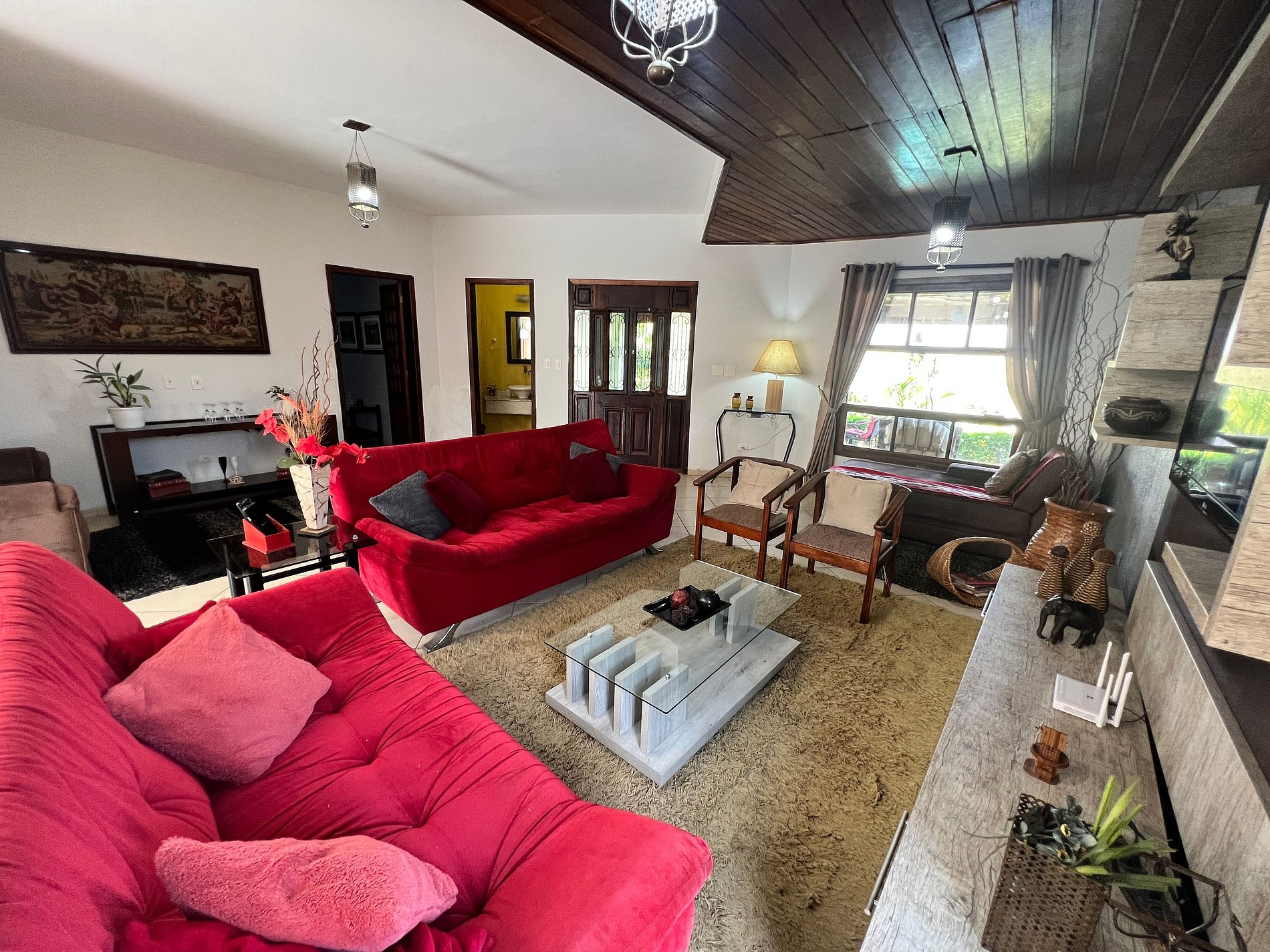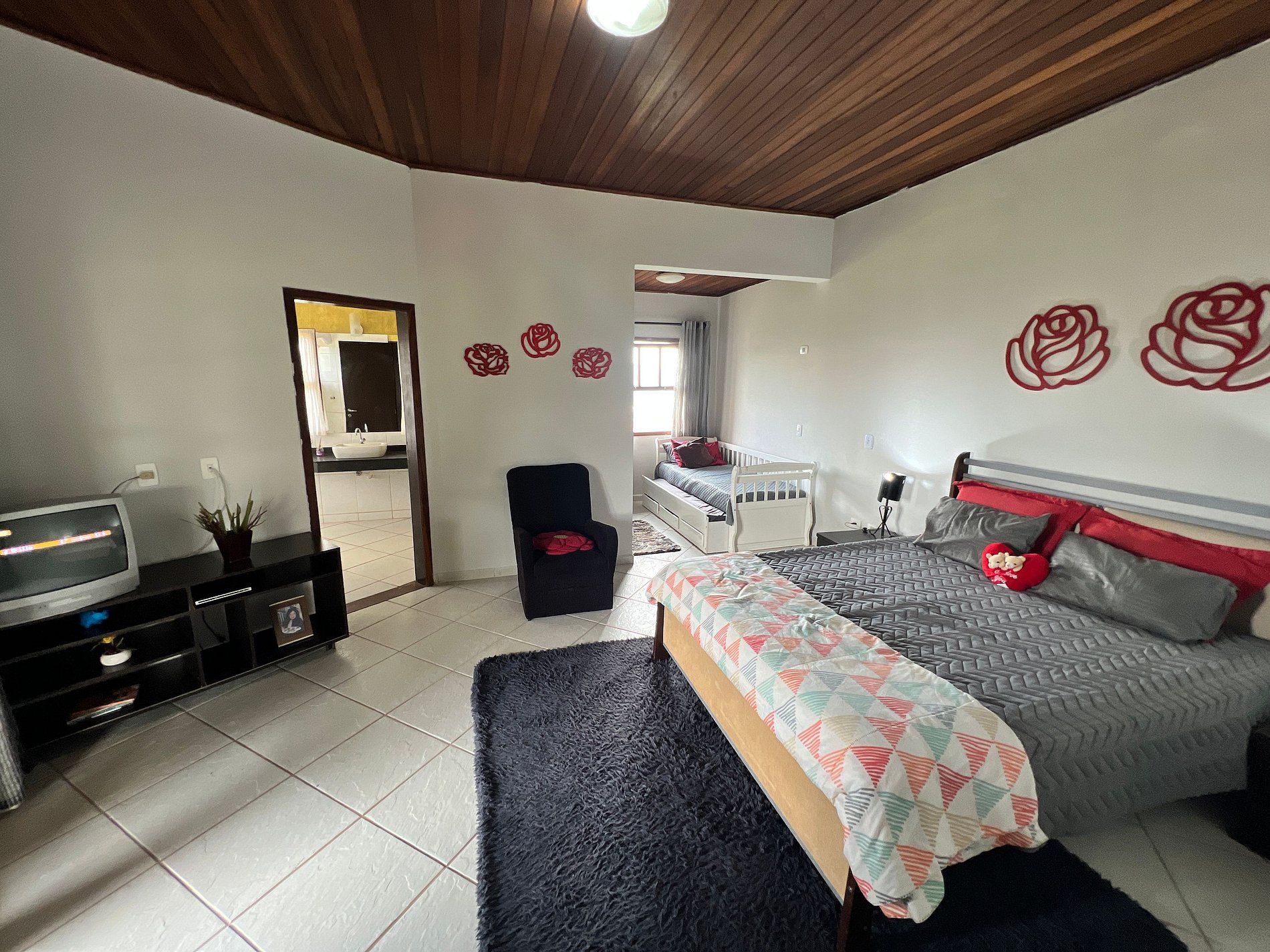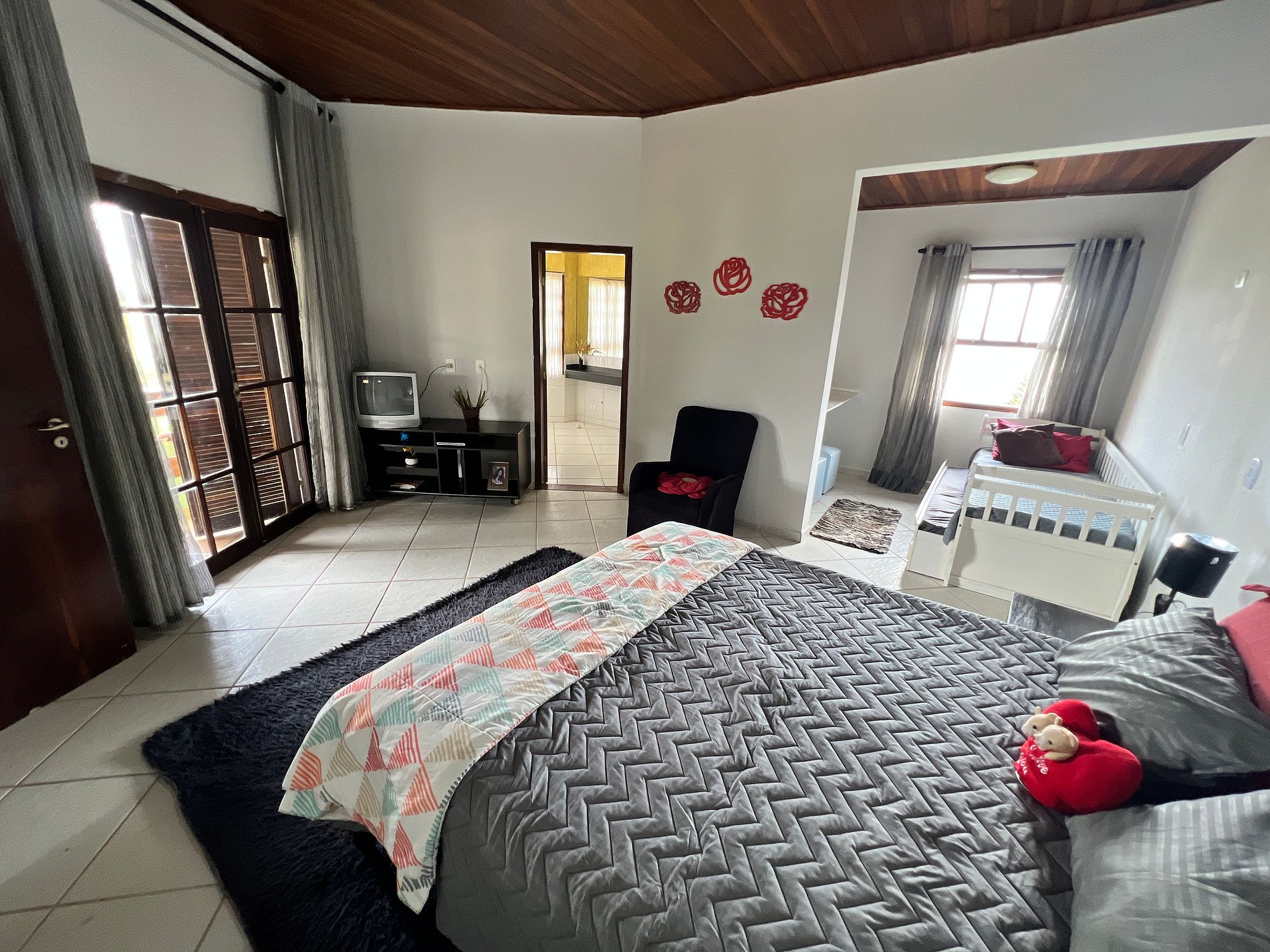 *Acomoda até 30 pessoas (a partir de 16 será cobrado uma taxa extra de R$100 por pessoa/noite - sob consulta prévia); Há 5 suítes; sala de estar com sofá; 2 lavabos e 5 banheiros ao total;