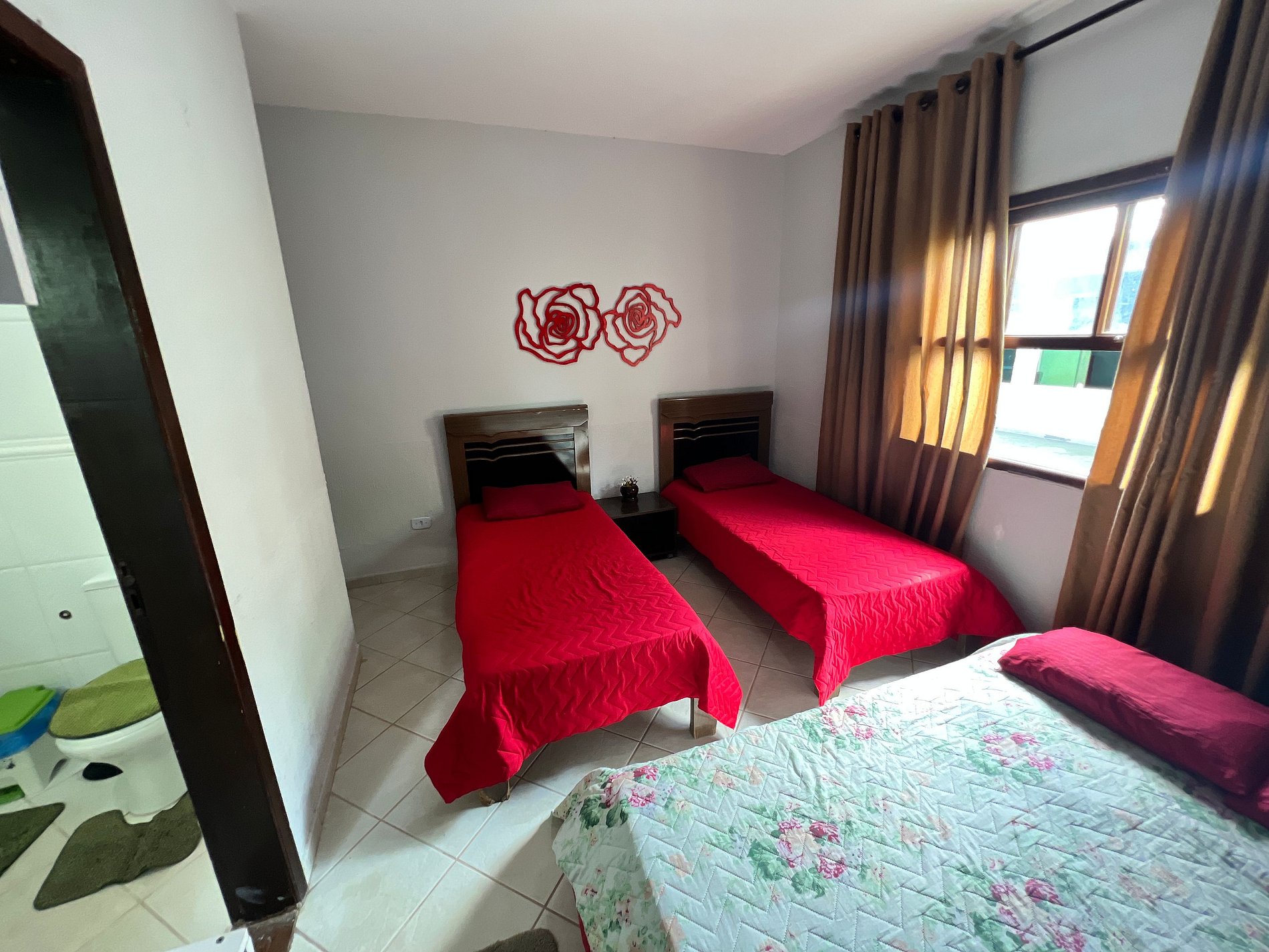 Suíte 5 (piso térreo) - 1 cama de casal padrão e 2 camas de solteiro; 2 colchões de solteiro;