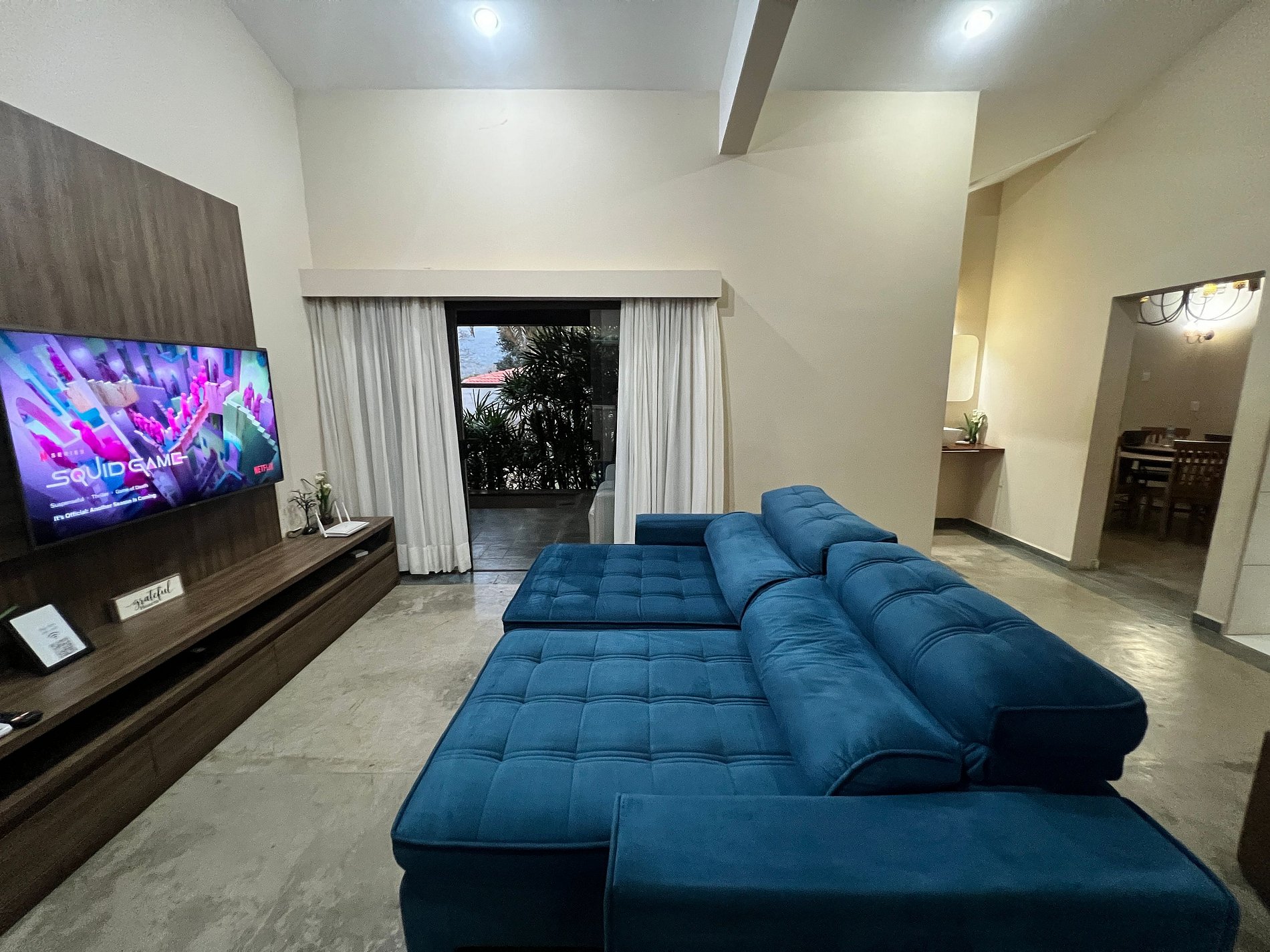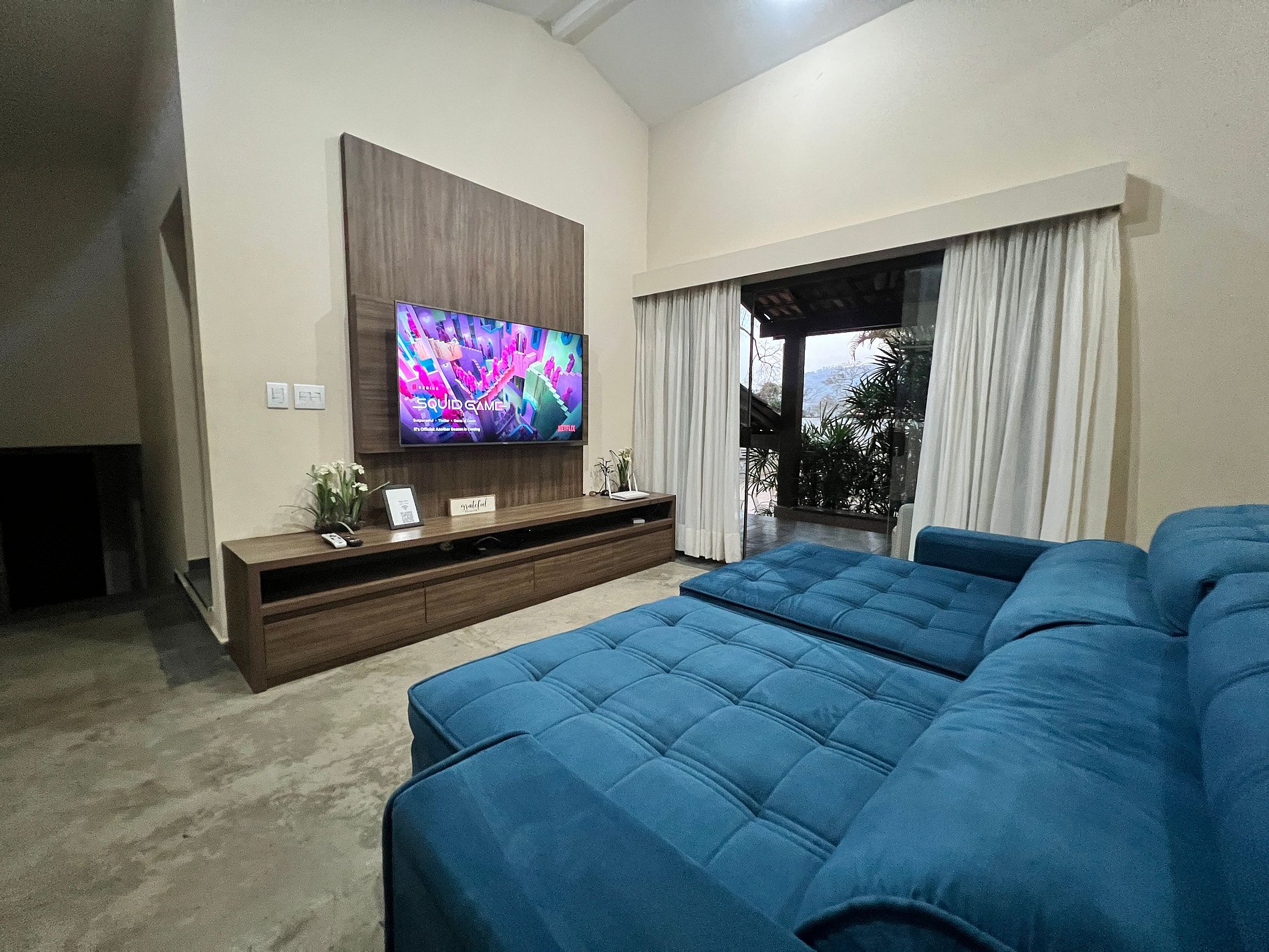 Smart TV com canais a cabo; Netflix, Disney+, Globo Play (acesso com login e senha próprios do locatário);