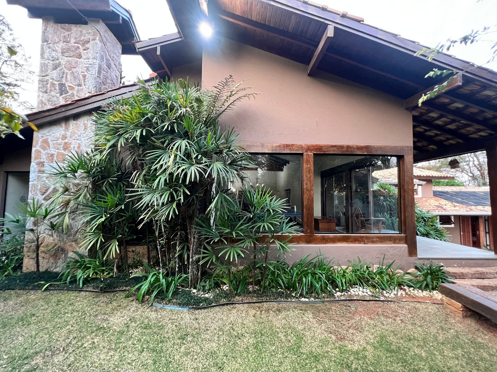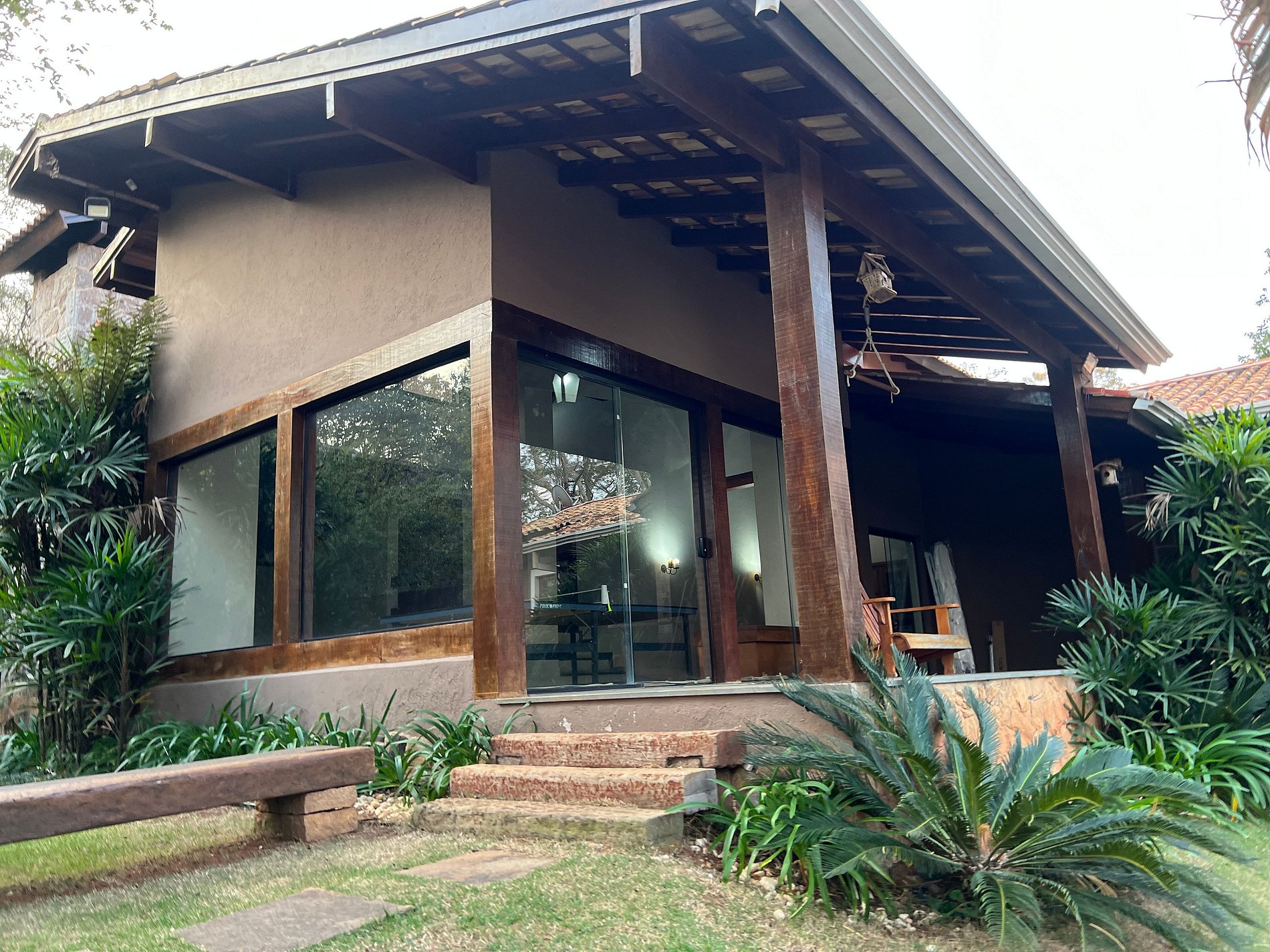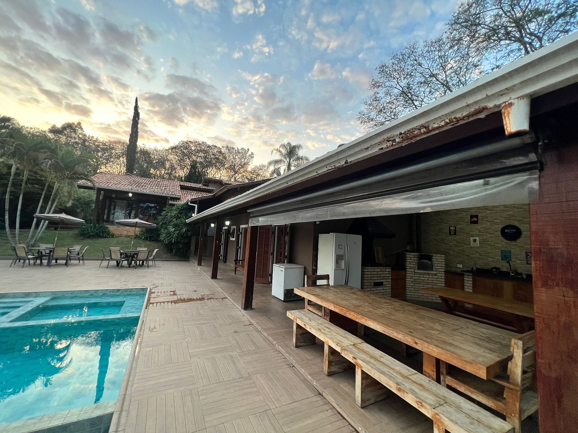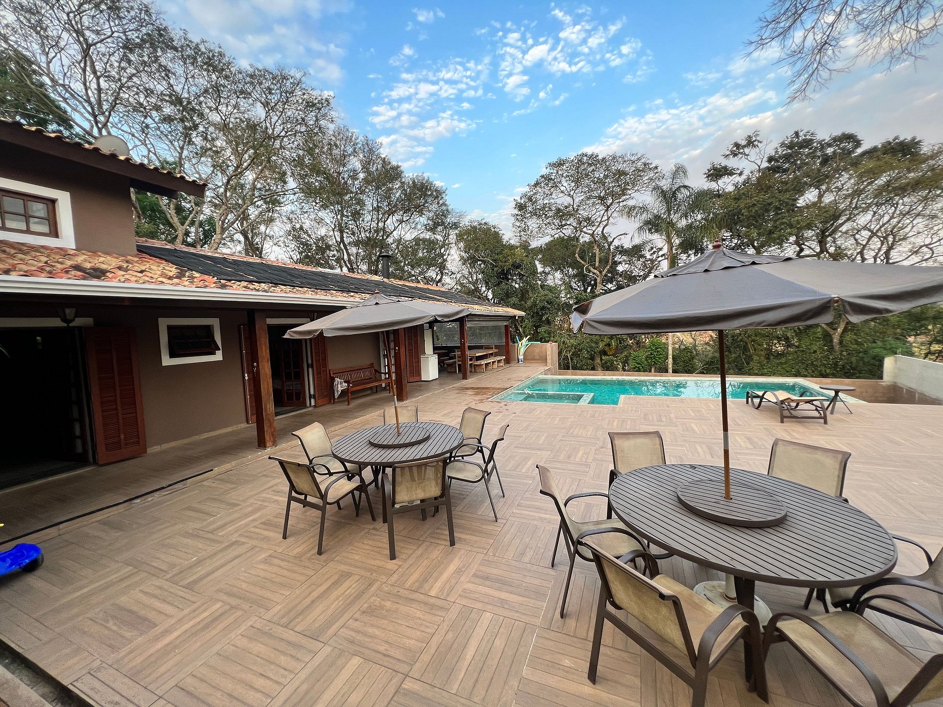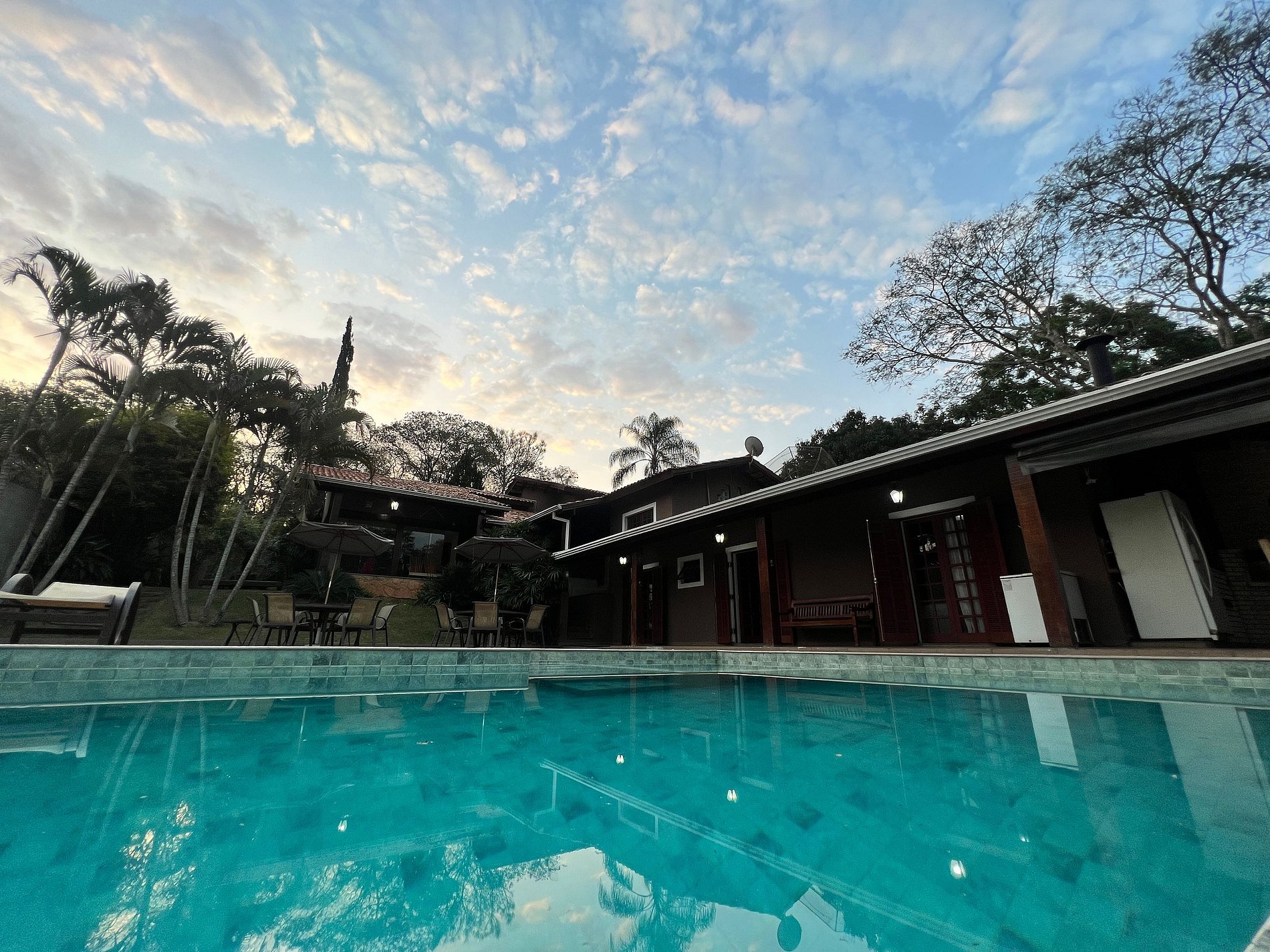 *Diferenciais: Varanda externa com churrasqueira, forno de pizza, fogão à lenha; Piscina aquecida com aquecimento solar, borda infinita e luzes internas coloridas; Playground; Mesa de ping pong; ombrelone e Rede para descanso; cozinha; lareira interna; Smart TV com canais a cabo; Netflix, Disney+, Globo Play (acesso com login e senha próprios do locatário); Wi-fi com internet de fibra 600mbp/s; armários; fechadura eletrônica.