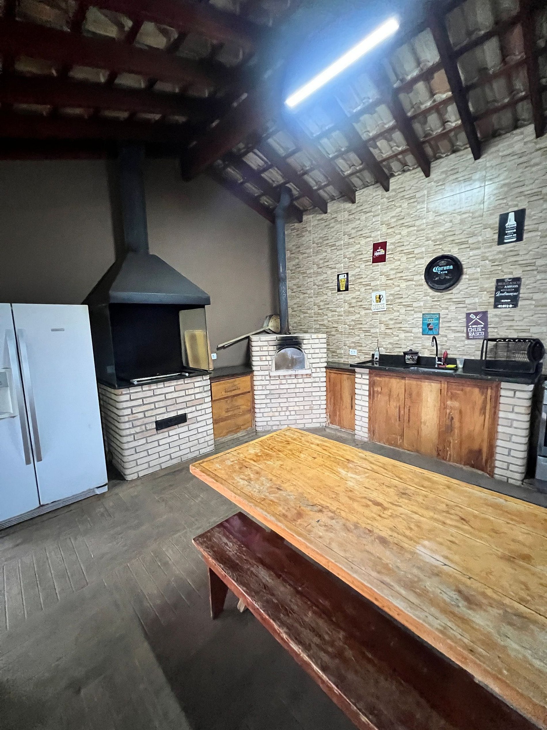coloridas; Playground; Mesa de PingPong; ombrelone e Rede p/ descanso; cozinha; lareira interna;