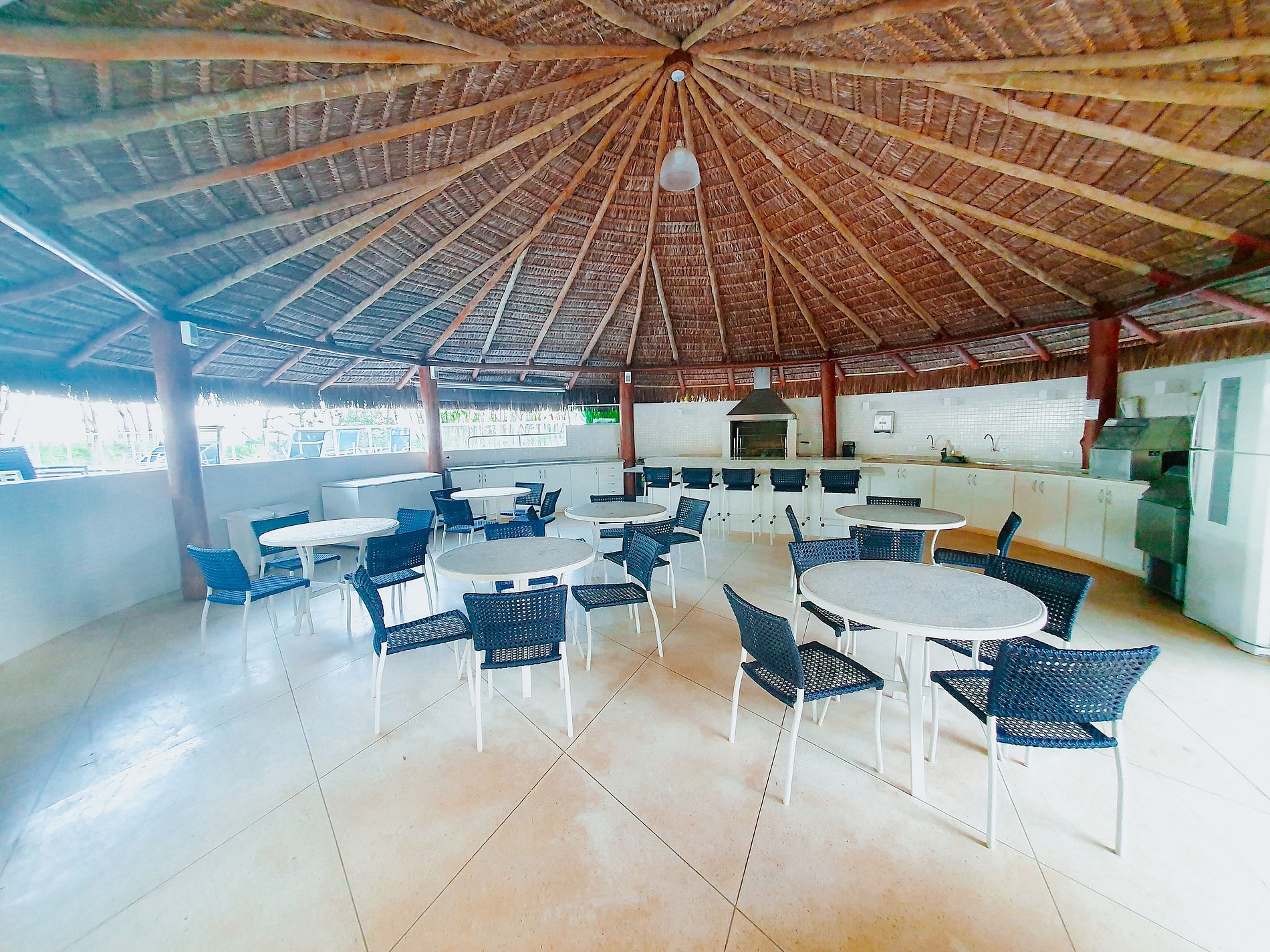 CONDOMÍNIO - Serviço de praia com tenda-sol e cadeiras; - Quiosque com churrasqueira; - Piscina aquecida; - Sauna; - Academia; -SPA; -Salão de festas com espaço gourmet; -Brinquedoteca; -Sala de jogos;