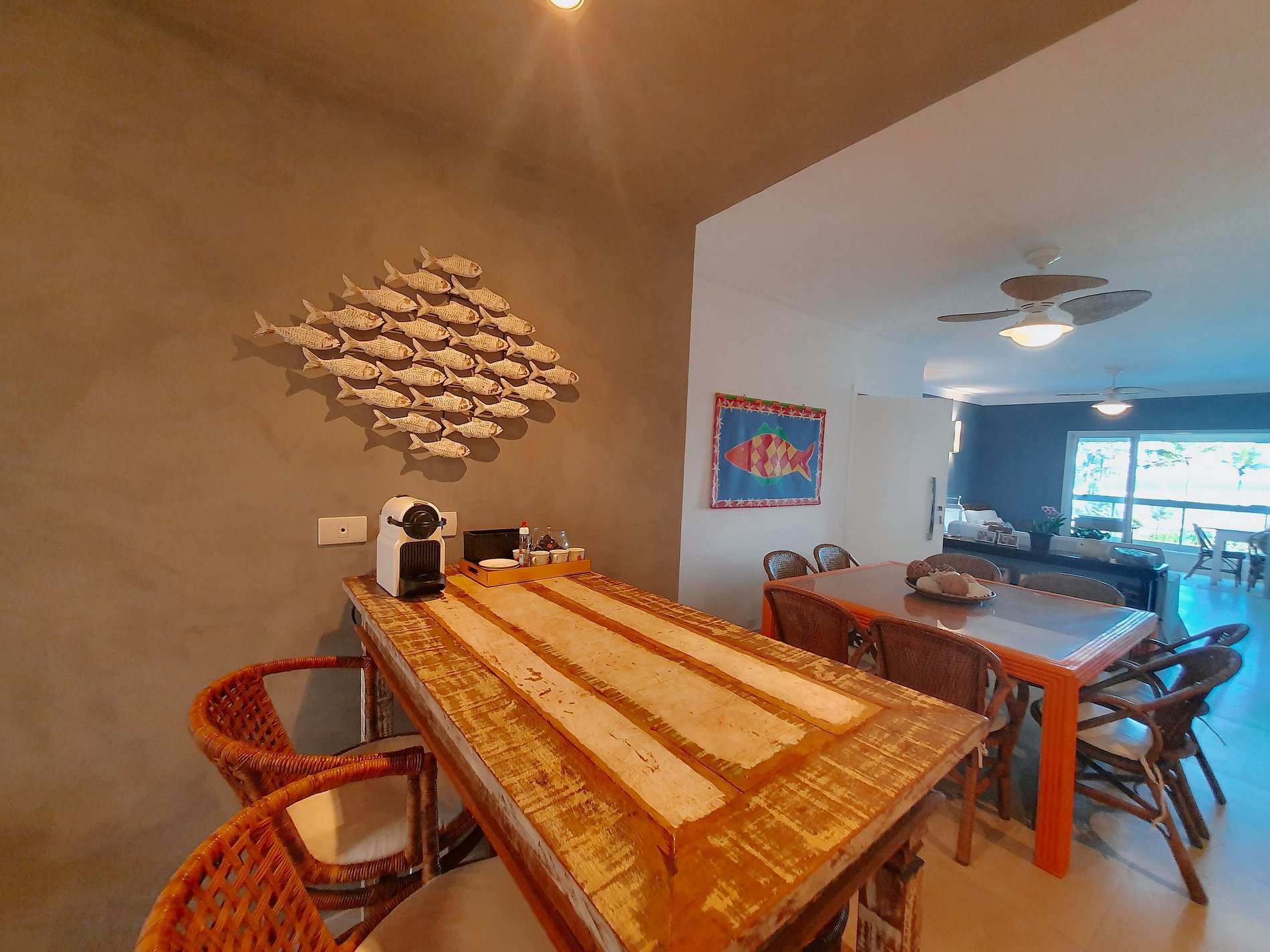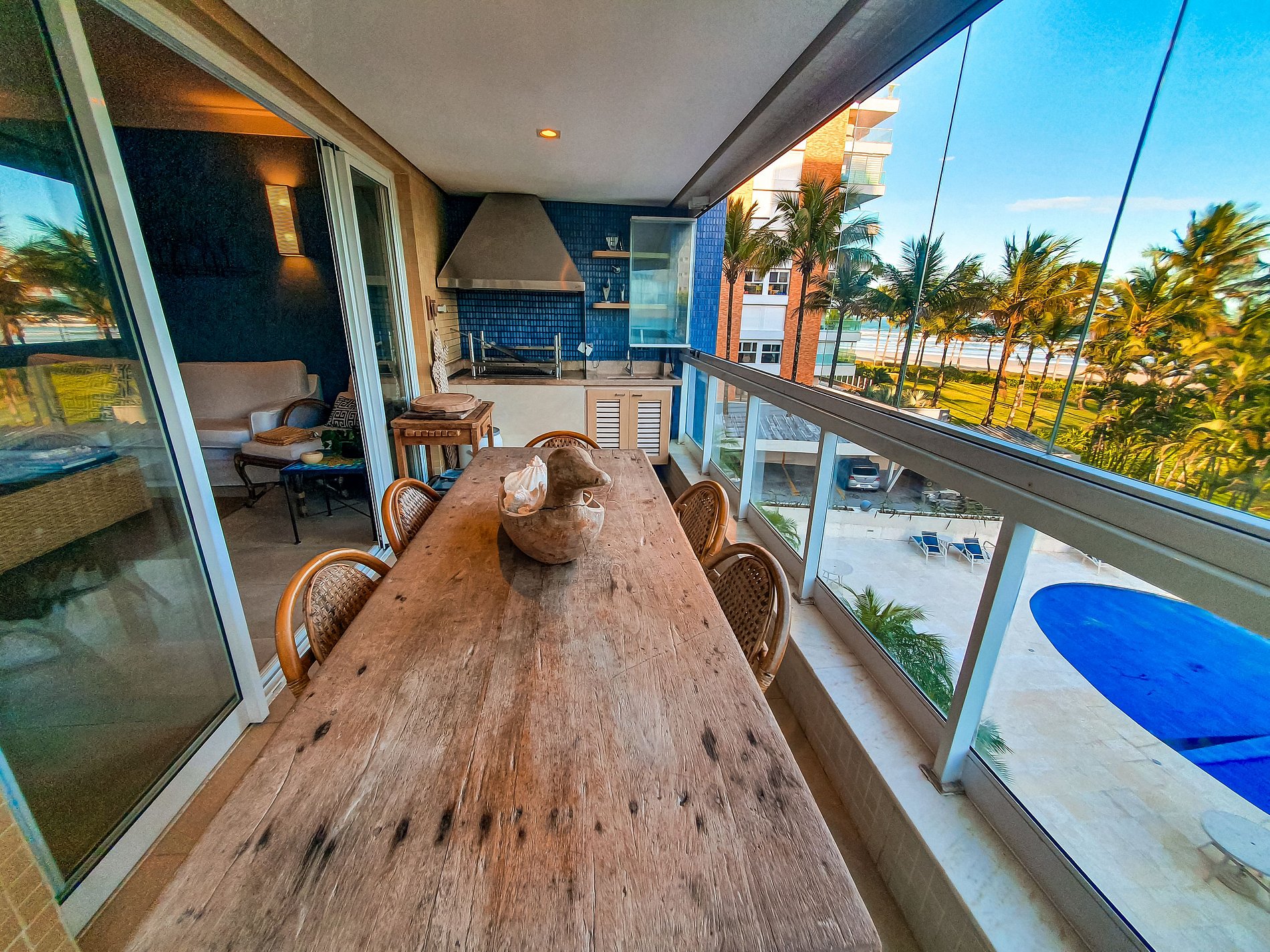 APARTAMENTO - Capacidade para 8 pessoas; - 4 quartos (3 suítes), 4 banheiros, varanda gourmet sala de jantar Sala de estar Cozinha e área de serviço; Berço desmontável; Travesseiros; Wi-fi com internet fibra 100 mb; Segurança: tela nas janelas e vidro na sacada; Smarts Tv 48''; Tv a cabo; Eletrodomésticos Filtro de água Máquina de lavar louça, Fogão e exaustor, Geladeira duplex, Freezer, microondas forno elétrico forninho cafeteira Nespresso liquidificador batedeira, faca elétrica espremedor de laranja além de todos os utensílios domésticos; - Varanda gourmet com churrasqueira; Área de serviço: máquina lava e seca, tanque e varal; - Ar condicionado nos quartos;