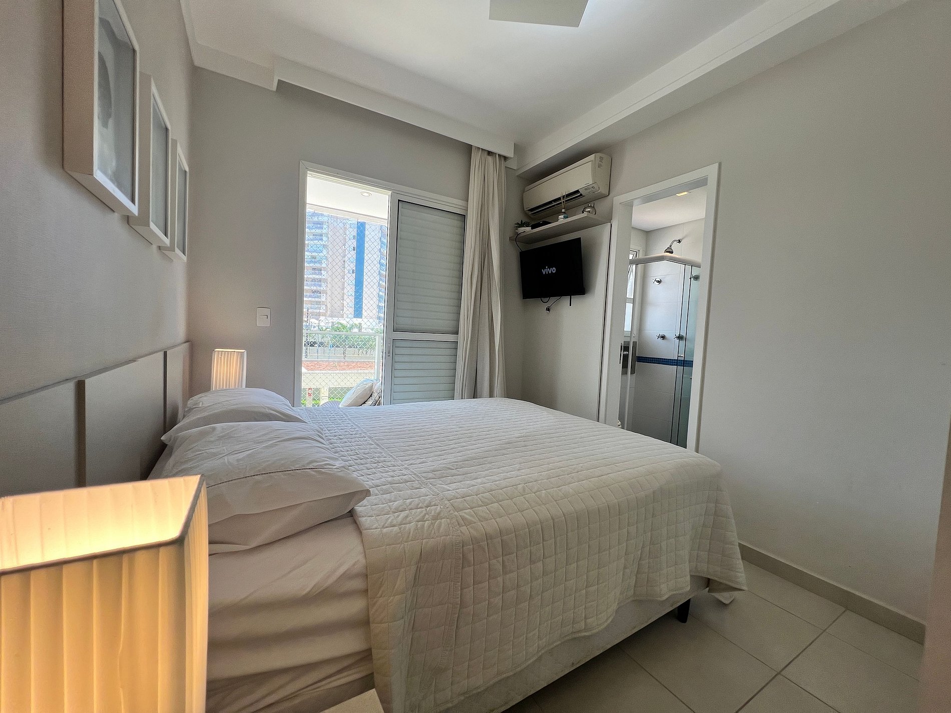 Home 45 Bertioga | Apto 96m2 c/ varanda gourmet, acomoda até 8 pessoas nos 3 quartos (2 suítes); Ar condicionado na sala e nas súites; Vista p/ o mar; Ventilador de teto em todos os cômodos;