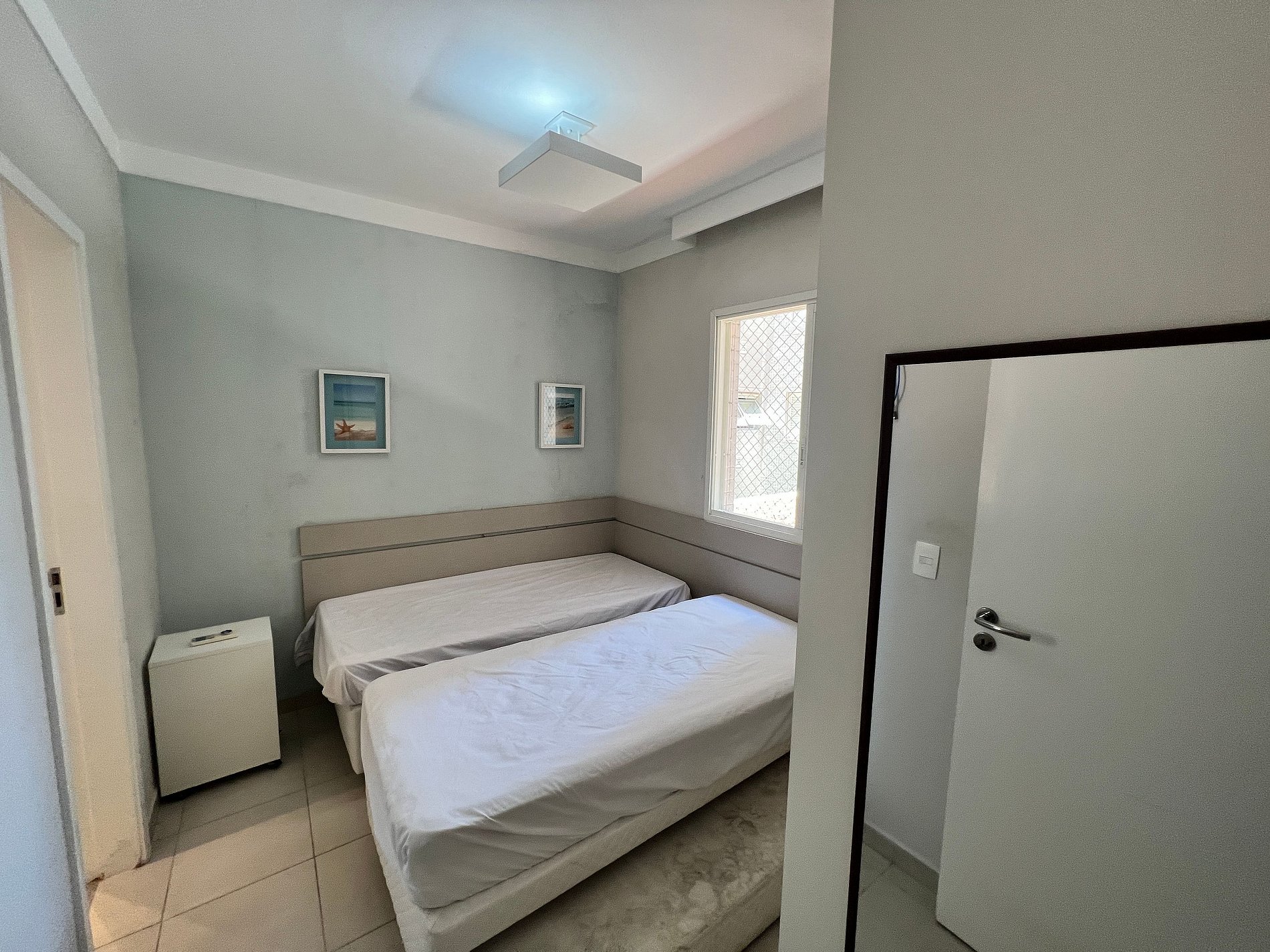 O APARTAMENTO: *Acomoda até 08 pessoas (nos consulte se tiver bebês adicionais); Há 3 quartos sendo 2 suítes; 1 banheiro no corredor. *Disposição das camas: Suíte 1 - 1 cama de casal padrão / Suíte 2 - 2 camas de solteiro e 1 cama auxiliar / Quarto 1 - 2 camas de solteiro e 1 cama auxiliar/ Sala de estar: com sofá. *Diferenciais: Varanda gourmet com churrasqueira; vista para o mar e piscina; sala de estar; sala de jantar; cozinha e área de serviço; Wi-fi com internet de fibra de 200 megas; Smart TV com canais a cabo (vivo TV) ; Ar condicionado na sala de estar e em todos os quartos; Roupa de cama e banho disponíveis; travesseiros; cabides; armários; interfone; aquecimento central de água e extintor de incêndio. *Eletrodomésticos/Utensílios: Filtro de água; garrafa térmica, coador de café (filtro comum); microondas; forno; fogão; geladeira, exaustor, frigobar e todos os utensílios essenciais de cozinha, inclusive para churrasco; área de serviço com tanque e varal de roupas; máquina de lavar; produtos de higiene pessoal (papel higiênico e sabonete limitados); panos de prato e toalhas de mesa; assadeiras. *Segurança: Tela de proteção na sacada e janela do quarto. *Importante: Caso queira levar seu animal de estimação de pequeno porte nos consulte. Acima de 1 é cobrada a taxa de R$80 por pet (mediante consulta prévia).; Há 2 vagas de carro cobertas tamanho M, para veículos médios; Limpeza do imóvel impecável e de acordo com os protocolos de combate ao Coronavírus; *Medidas de segurança e controle dos hóspedes que entrarão nesta propriedade particular: Dados para cadastro de todos os hóspedes serão solicitados após a sua confirmação de reserva. (Nome completo, Rg, data de nascimento e dados dos veículos). Do hóspede responsável pela reserva, é necessário o envio de foto legível do documento (RG ou CNH).