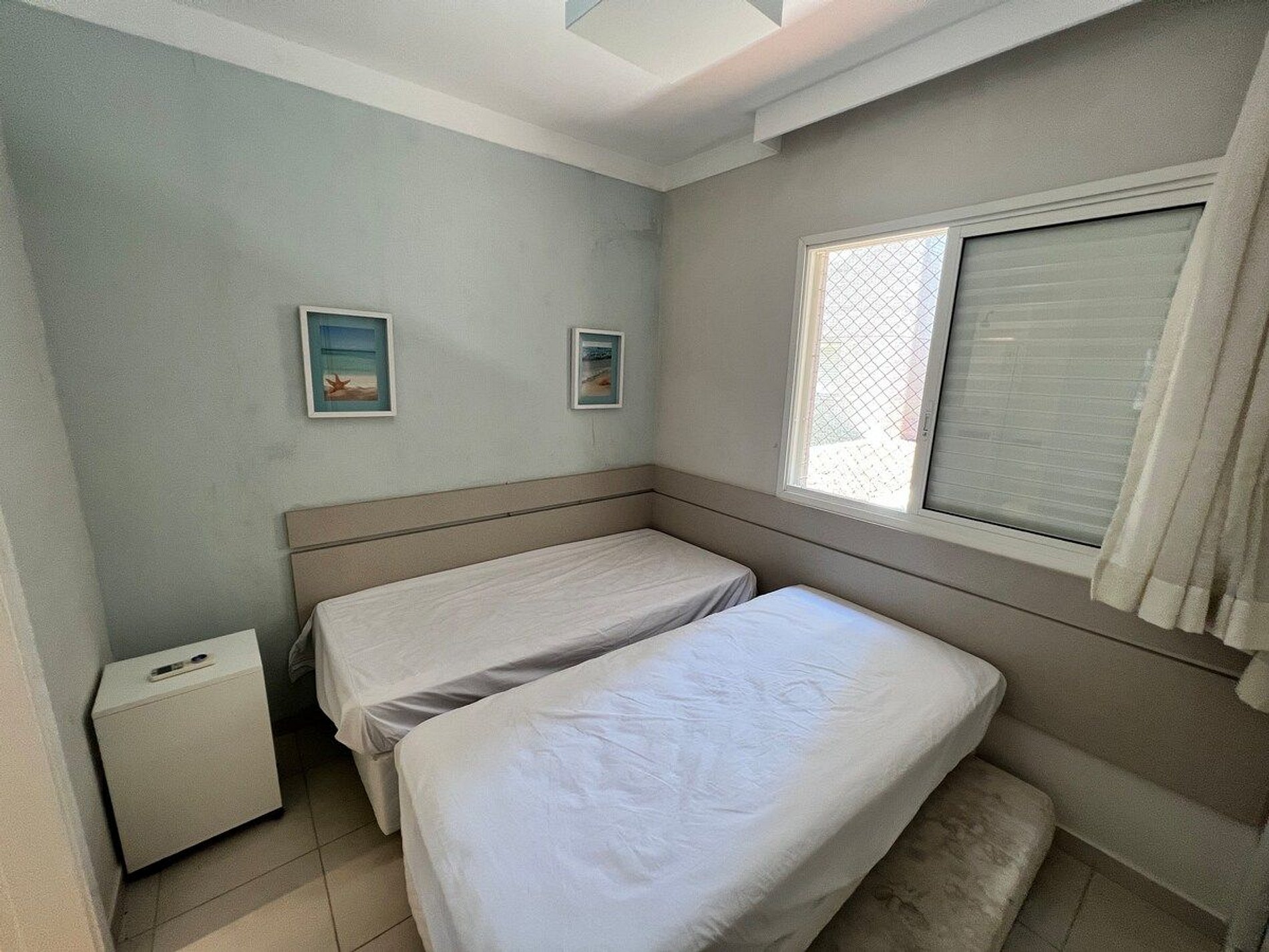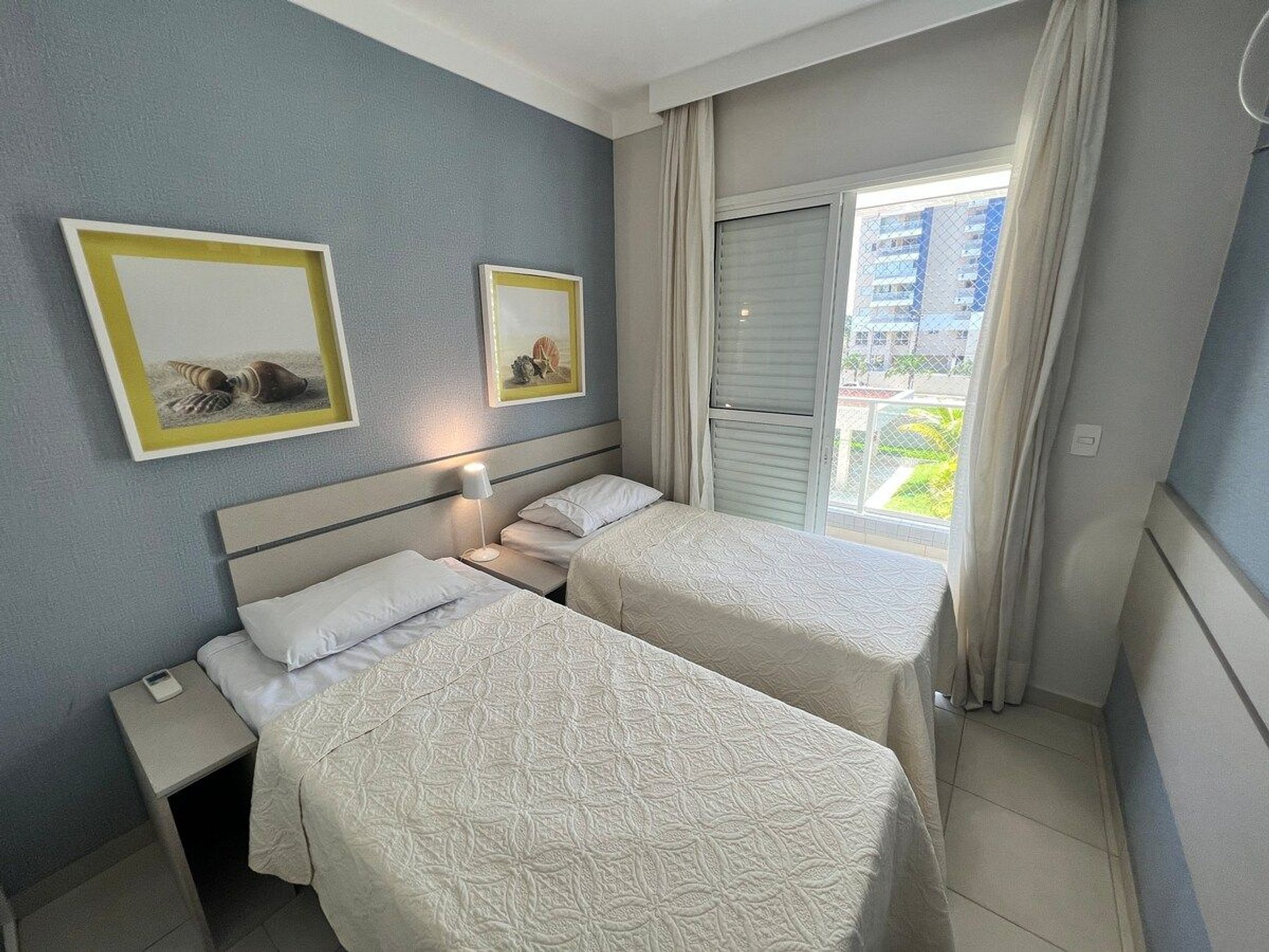 O APARTAMENTO: *Acomoda até 08 pessoas (nos consulte se tiver bebês adicionais); Há 3 quartos sendo 2 suítes; 1 banheiro no corredor. *Disposição das camas: Suíte 1 - 1 cama de casal padrão / Suíte 2 - 2 camas de solteiro e 1 cama auxiliar / Quarto 1 - 2 camas de solteiro e 1 cama auxiliar/ Sala de estar: com sofá. *Diferenciais: Varanda gourmet com churrasqueira; vista para o mar e piscina; sala de estar; sala de jantar; cozinha e área de serviço; Wi-fi com internet de fibra de 200 megas; Smart TV com canais a cabo (vivo TV) ; Ar condicionado na sala de estar e em todos os quartos; Roupa de cama e banho disponíveis; travesseiros; cabides; armários; interfone; aquecimento central de água e extintor de incêndio. *Eletrodomésticos/Utensílios: Filtro de água; garrafa térmica, coador de café (filtro comum); microondas; forno; fogão; geladeira, exaustor, frigobar e todos os utensílios essenciais de cozinha, inclusive para churrasco; área de serviço com tanque e varal de roupas; máquina de lavar; produtos de higiene pessoal (papel higiênico e sabonete limitados); panos de prato e toalhas de mesa; assadeiras. *Segurança: Tela de proteção na sacada e janela do quarto. *Importante: Caso queira levar seu animal de estimação de pequeno porte nos consulte. Acima de 1 é cobrada a taxa de R$80 por pet (mediante consulta prévia).; Há 2 vagas de carro cobertas tamanho M, para veículos médios; Limpeza do imóvel impecável e de acordo com os protocolos de combate ao Coronavírus; *Medidas de segurança e controle dos hóspedes que entrarão nesta propriedade particular: Dados para cadastro de todos os hóspedes serão solicitados após a sua confirmação de reserva. (Nome completo, Rg, data de nascimento e dados dos veículos). Do hóspede responsável pela reserva, é necessário o envio de foto legível do documento (RG ou CNH).