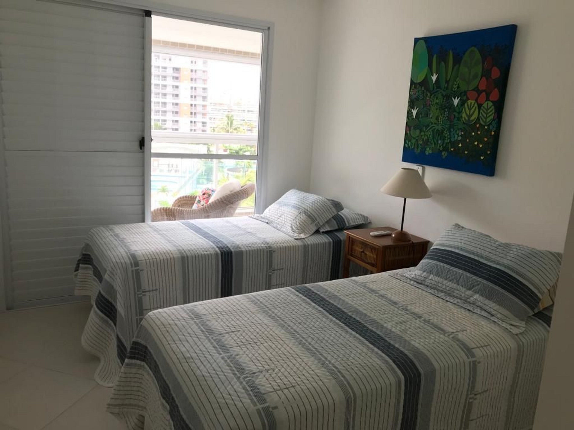 *Disposição das camas: Quarto 1 (Suíte) 1 cama de casal padrão / Quarto 2 - 1 cama de casal padrão / Quarto 3 - 2 camas de solteiro. *Diferenciais: Varanda gourmet com churrasqueira, piscina comum e aquecida; jacuzzi; Sauna; Brinquedoteca; Playground; Academia; Qiuadra Poliesportiva; Serviço de praia; Smart TV; Wifi;
