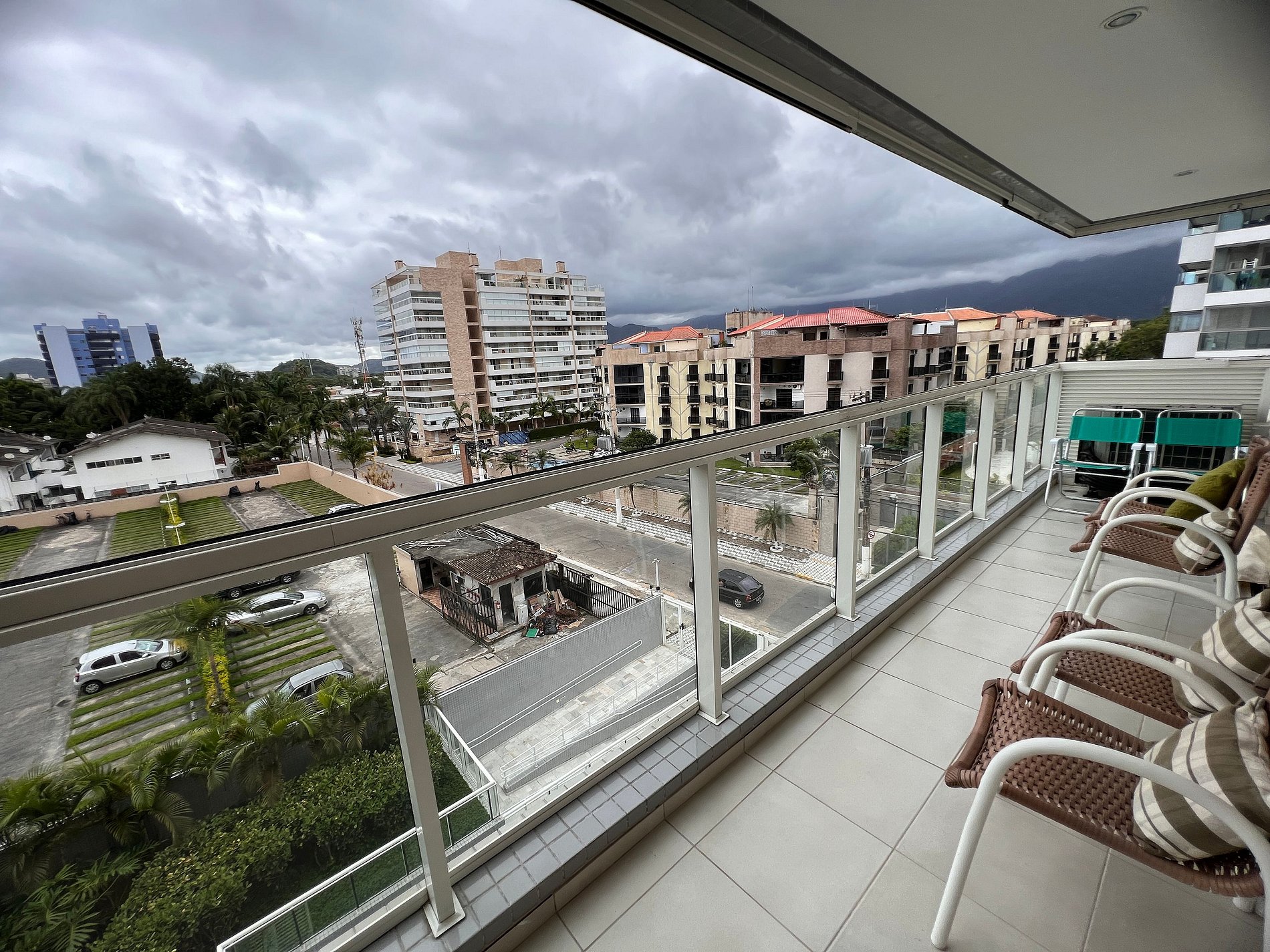 Varanda c/ persianas, vidros retráteis e tela de proteção nos quartos