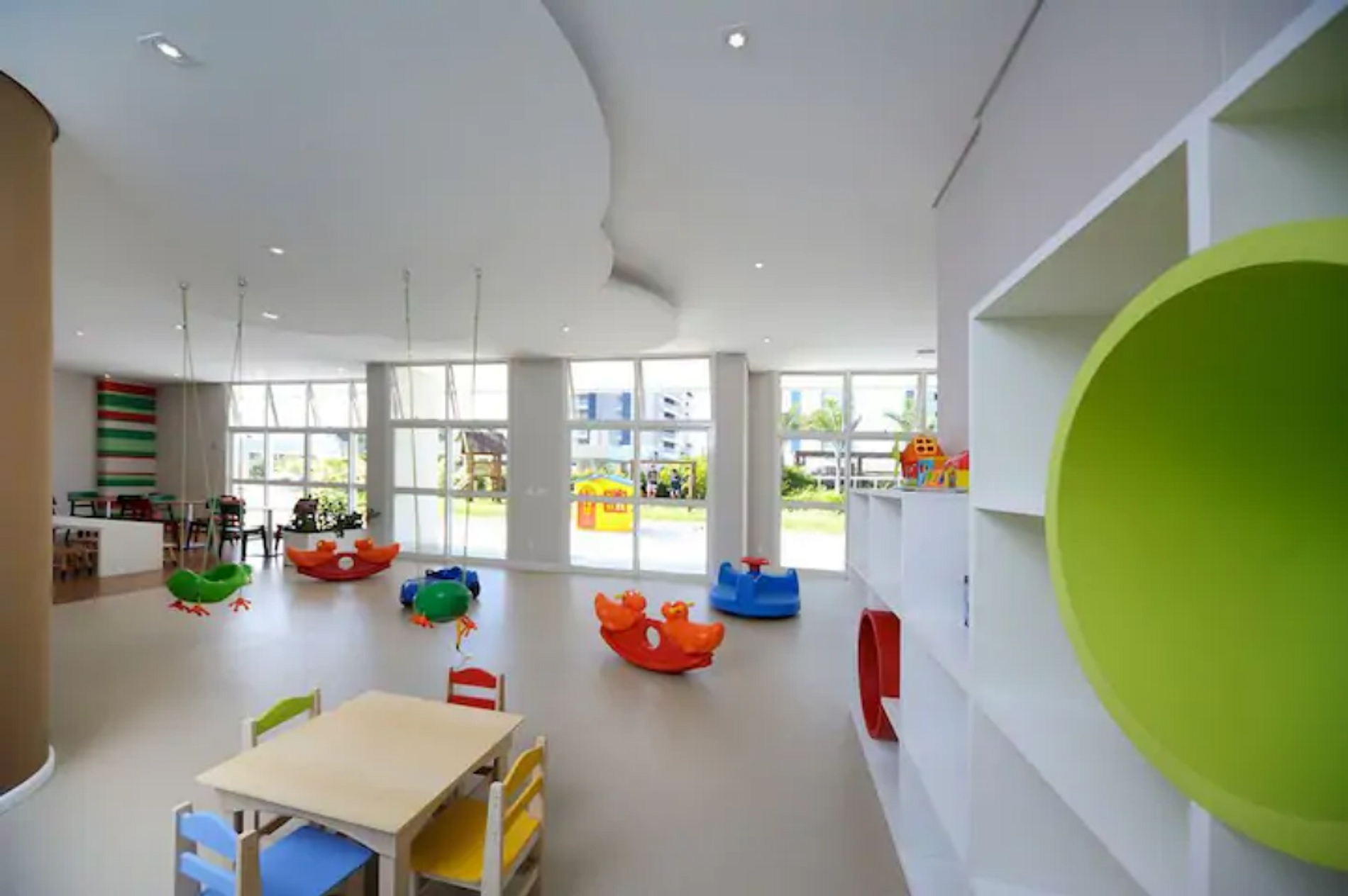 4 piscinas, 1 aquecida; sauna; playground, brinquedoteca, quadra poliesportiva, serviço de praia;