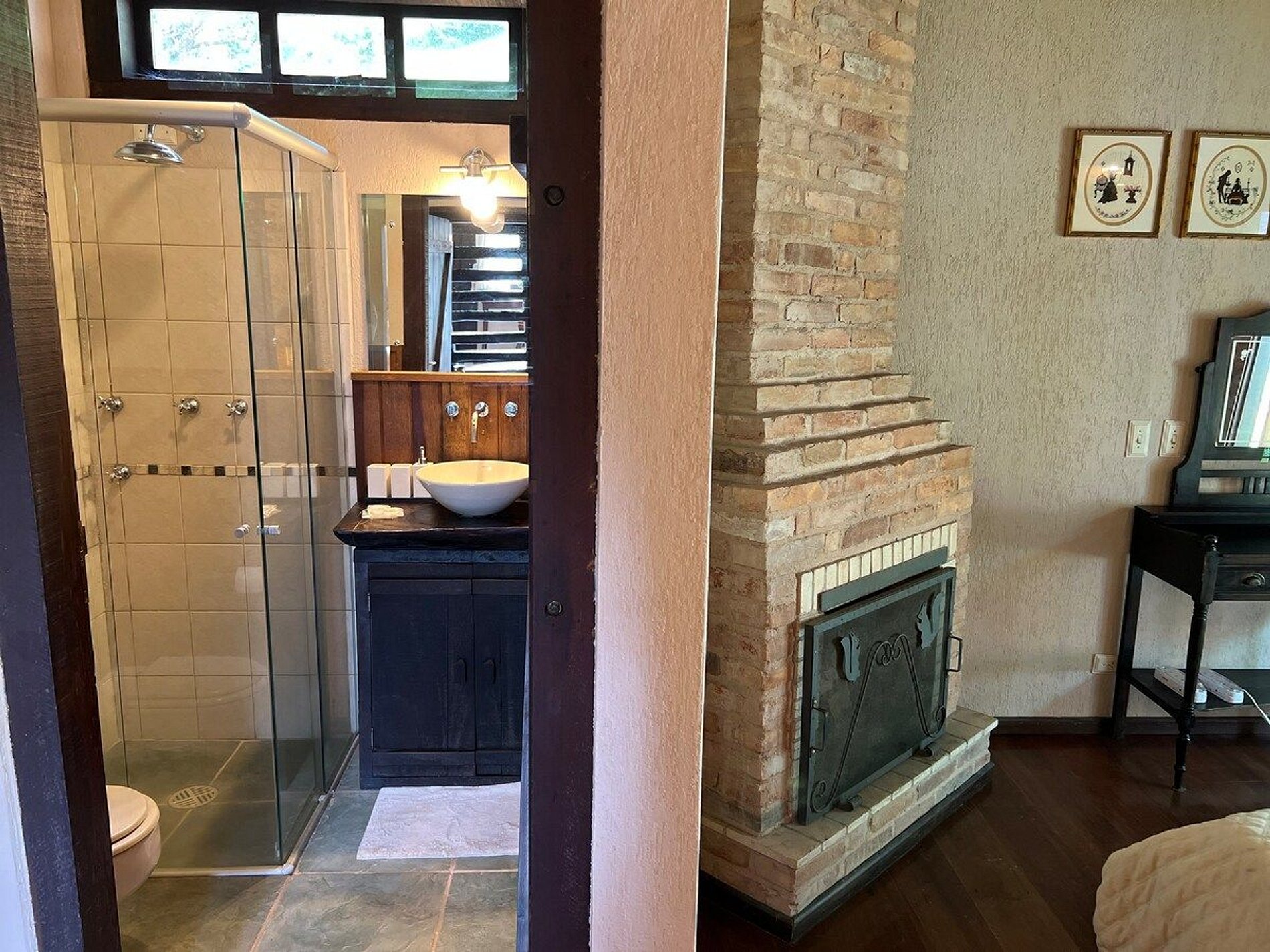 Localizada no luxuoso cond. Pedra do Fogo, acomoda até 6 pessoas nas 3 suítes c/ lareira.