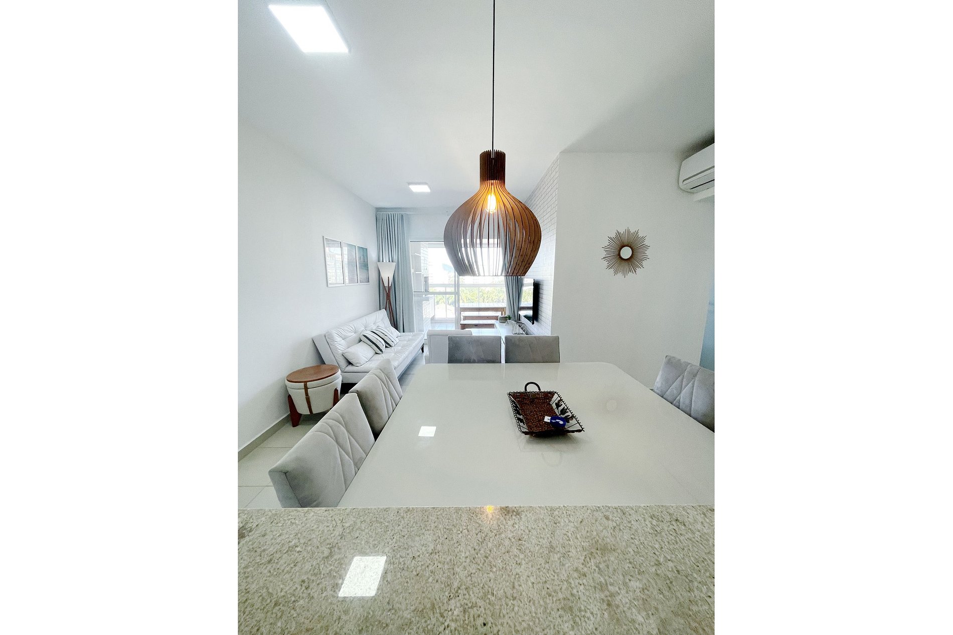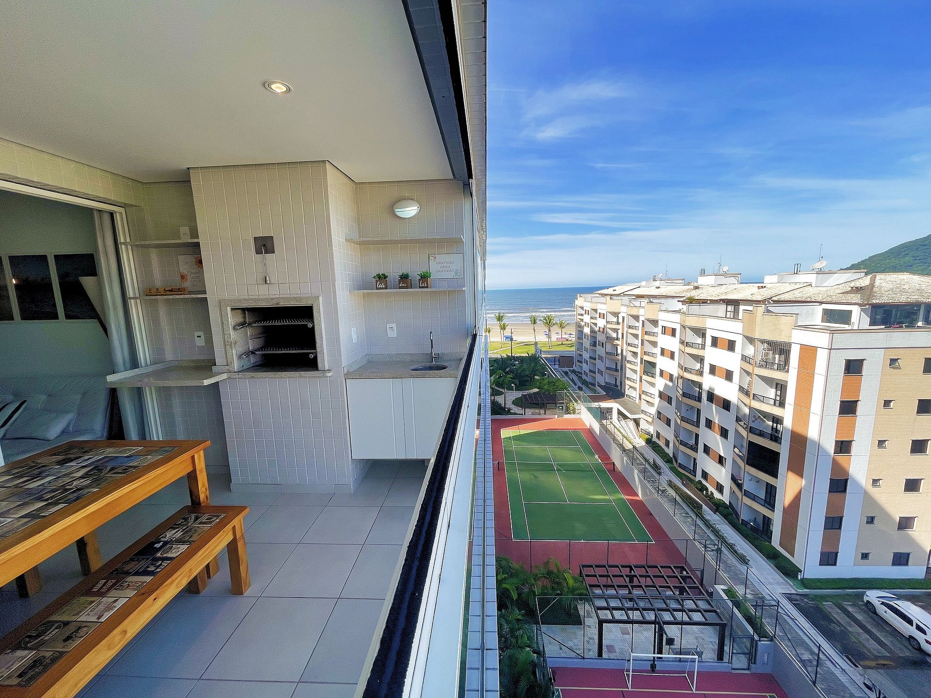 *Diferenciais: Varanda gourmet com churrasqueira; Vista para o mar; sala de estar; cozinha e área de serviço; Wi-fi com internet de 200mbp/s; Smarts TV com canais a cabo, Netflix, Amazon Prime, Disney Plus; Ar condicionado na sala de estar e em todos os quartos; Roupa de cama, toalhas de rosto; travesseiros e cobertores disponíveis; janela da sala e quartos com cortina blackout; aquecimento central de água; extintor de incêndio; armários; Interfone e fechadura eletrônica.