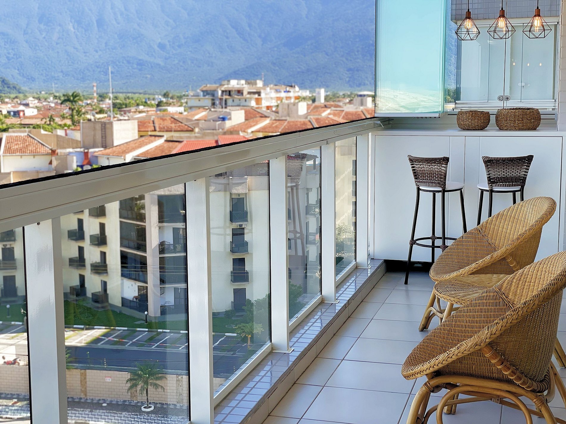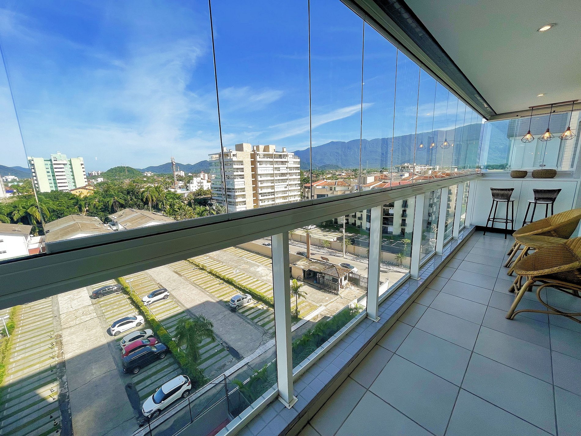 Home 5 Bertioga | Apto 97m2 c/ varanda gourmet, churrasqueira e vista para o mar