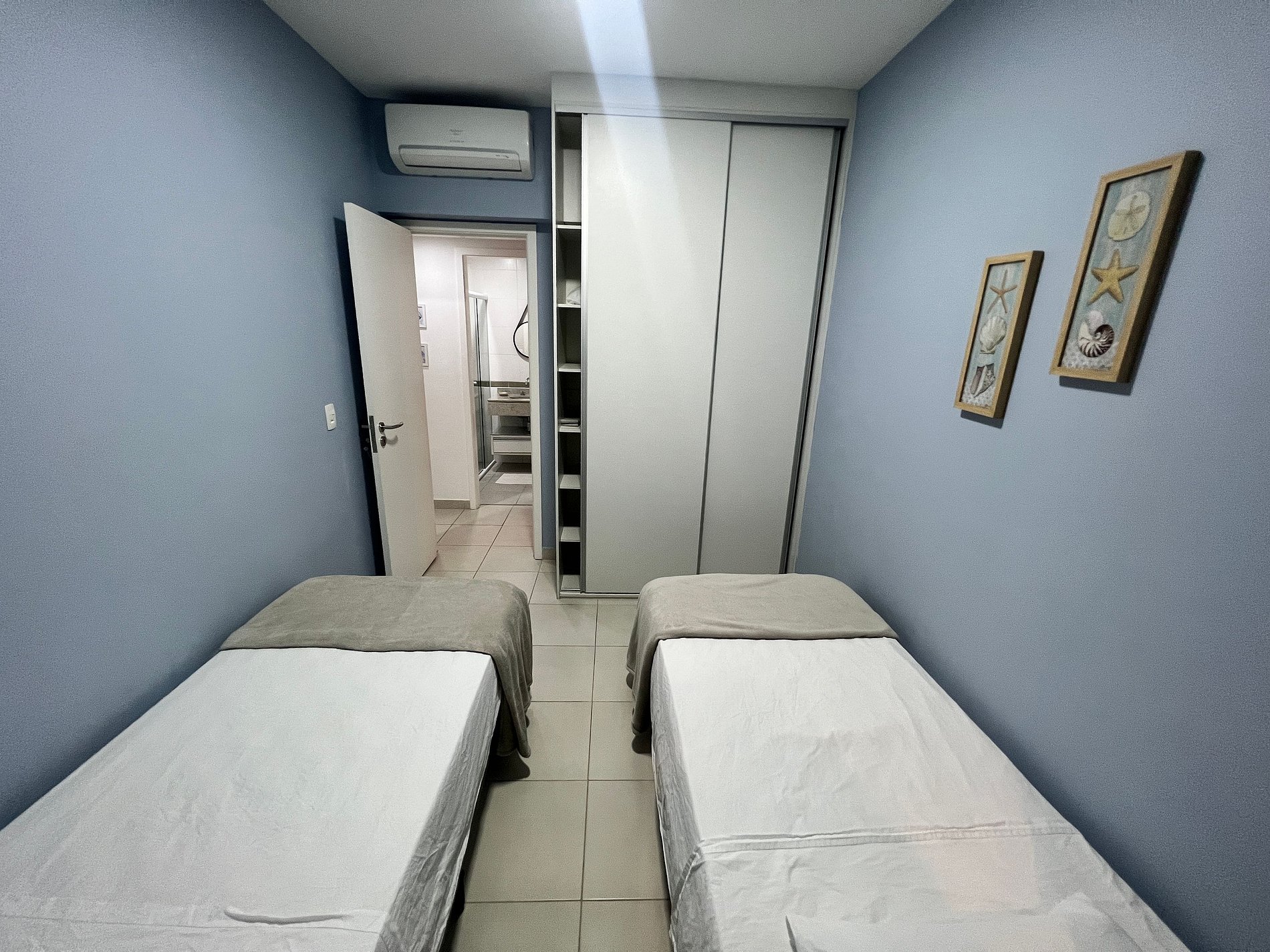 *Diferenciais: Varanda gourmet com churrasqueira; Vista para o mar; sala de estar; cozinha e área de serviço; Wi-fi com internet de 200mbp/s; Smarts TV com canais a cabo, Netflix, Amazon Prime, Disney Plus; Ar condicionado na sala de estar e em todos os quartos; Roupa de cama, toalhas de rosto; travesseiros e cobertores disponíveis; janela da sala e quartos com cortina blackout; aquecimento central de água; extintor de incêndio; armários; Interfone e fechadura eletrônica.