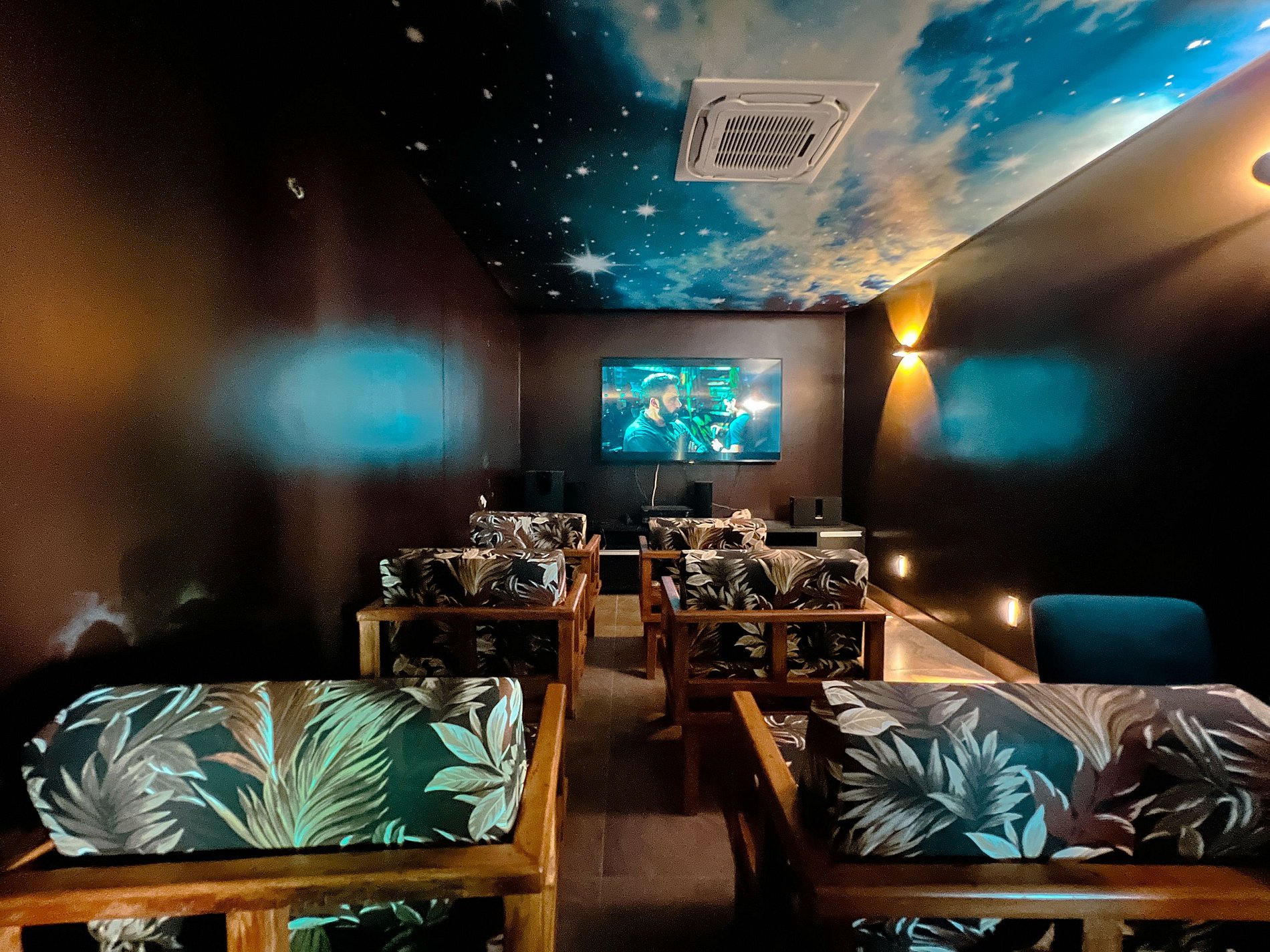Sala cinema, sala jogos, pebolim, mesa de sinuca;