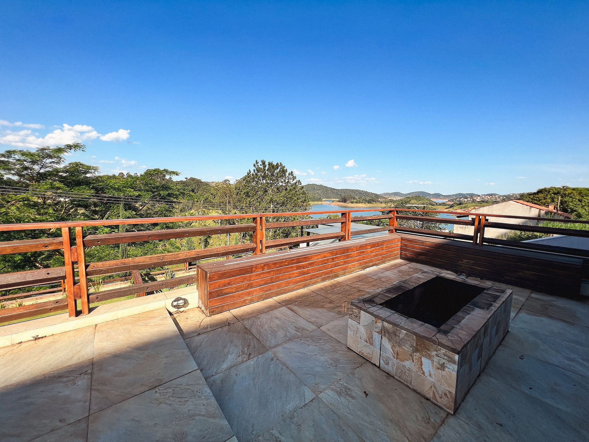 A ACOMODAÇÃO: possui tudo para os hóspedes desfrutarem de uma estadia incrível. - Máximo de 17 pessoas; 5 quartos sendo todos Suítes; Sala de estar; Sala de jantar; Cozinha; Área de serviço; Piscina; SPA para 08 pessoas - aquecimento mediante cobrança inteligente com medidores de tempo de uso; Garagem para 5 carros; Água proveniente de poço artesiano; Área de lazer coberta com churrasqueira; Forno a lenha- Local para fogueira; Horta; Vista incrível para a Represa; Brinquedoteca; Sala de Cinema para 11 pessoas; Sala de Jogos; Pebolim; Mesa de Sinuca; Área gourmet com comandos de voz - Alexa. Todos os dormitórios se encontram no piso superior (acesso por escada). COZINHA COMPLETA: 2 Geladeiras, sendo 1 interna e 1 na área gourmet -Freezer- Microondas - Fogão - Forno - Cooktop - Liquidificador- Lancheira - Garrafa térmica- Filtro de água- Fritadeira elétrica - Taça de vinho e champanhe- Itens para churrasco -Louça e talheres -LAZER: Smart TV com canais abertos e a cabo- Cinema - Netflix; Amazon Prime; Disney Plus; WI-FI; Cadeiras de piscina - Aparelho de som - OUTROS ITENS - Varal de roupas - Máquina de lavar e Secadora de roupas; 2 Ventiladores portáteis; Guarda-roupa - Banheira - aquecimento mediante cobrança inteligente com medidores de tempo de uso; A piscina não é climatizada, já que a temperatura da região é elevada, mantendo a água quase sempre aquecida. Além de que ela fica exposta ao sol durante todo o dia. Adicional: o condomínio possui rampa de acesso a represa, porém, não franqueia acesso a locatários. LIMPEZA -É feita antes do check- in e após o check- out - Limpeza com substância desinfetante -Desinfecção de superfícies tocadas com frequência (como bancadas, interruptores, puxadores e torneiras) e seguindo as normas do combate ao Covid. REGRAS -Permitido Fumar somente fora da casa. -Seu PET é bem-vindo -Aceita 1 pet cortesia (mediante consulta prévia). Acima de 1 é cobrada a taxa de R$80 por pet (mediante consulta prévia).; -Idade mínima de 25 anos para locatário (aceitamos apenas família) -Proibição de música alta ou barulho que perturbem os vizinhos (condomínio familiar).