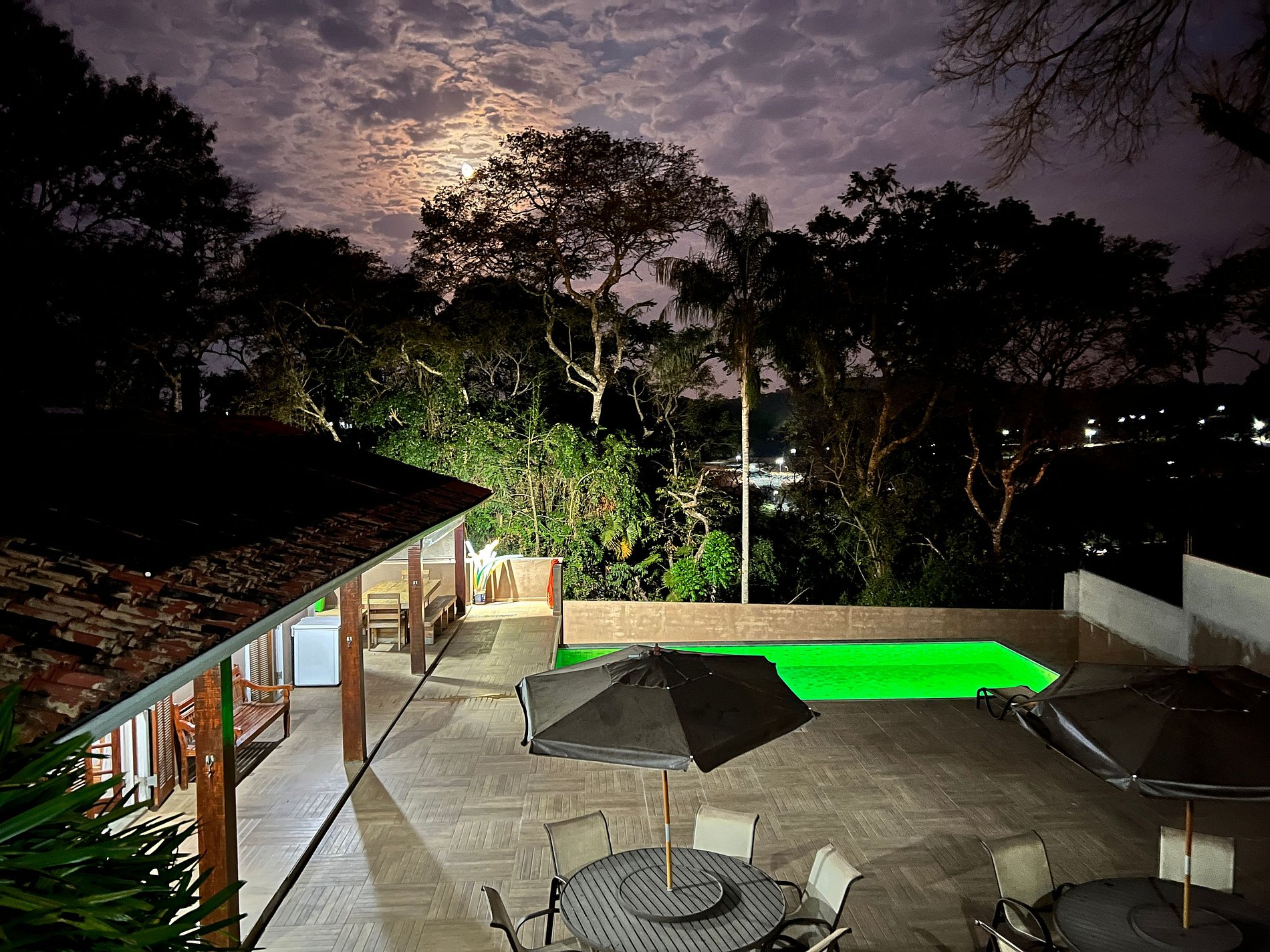 *Diferenciais: Varanda externa com churrasqueira, forno de pizza, fogão à lenha; Piscina aquecida com aquecimento solar, borda infinita e luzes internas coloridas; Playground; Mesa de ping pong; ombrelone e Rede para descanso; cozinha; lareira interna; Smart TV com canais a cabo; Netflix, Disney+, Globo Play (acesso com login e senha próprios do locatário); Wi-fi com internet de fibra 600mbp/s; armários; fechadura eletrônica.