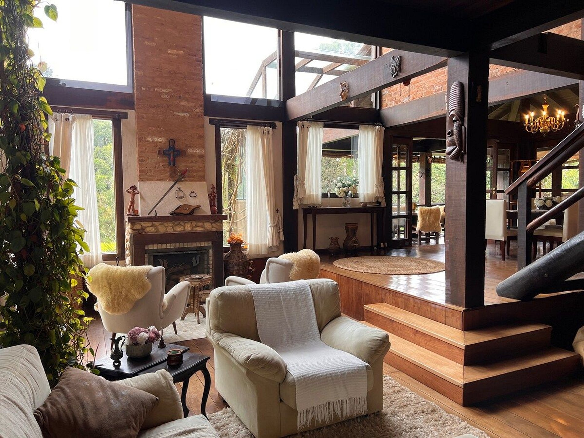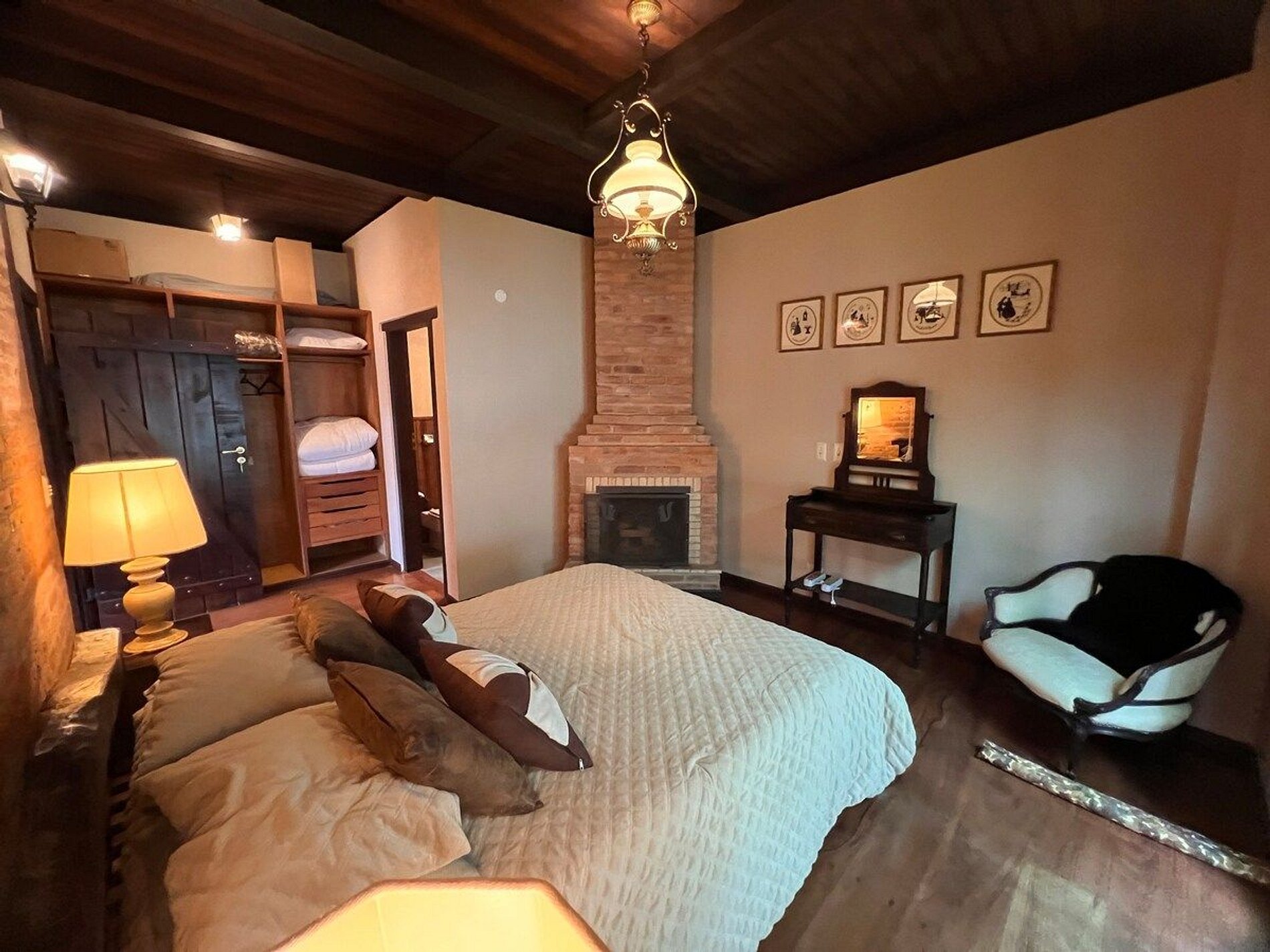 Localizada no luxuoso cond. Pedra do Fogo, acomoda até 6 pessoas nas 3 suítes c/ lareira.